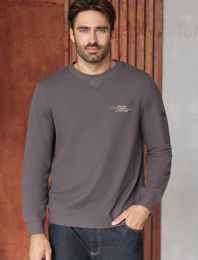 Джемпер выполнен из фактурного трикотажа. Модель дополняет лаконичный принт. Эластичный хлопковый материал хорошо пропускает воздух и комфортно облегает фигуру. В таком изделии не будет жарко даже в самое теплое время года.