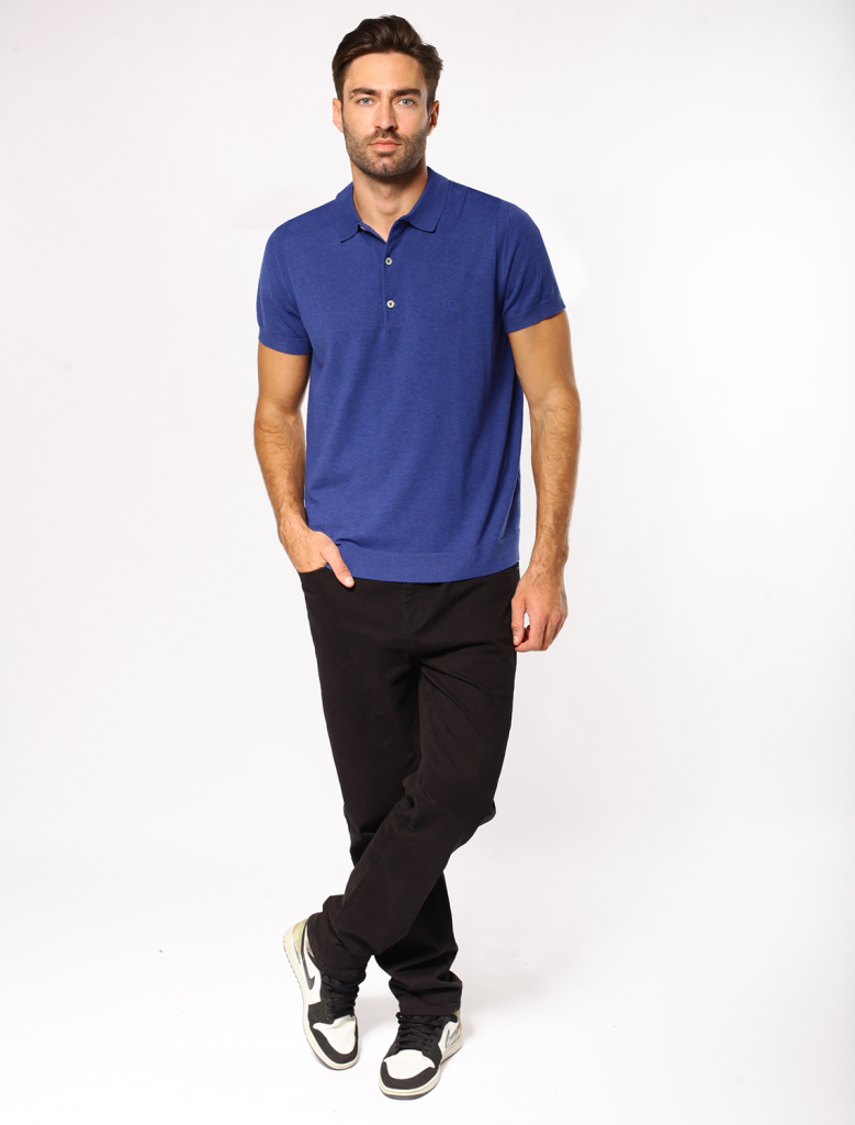 Синее поло с эффектом меланж тонкой вязки из 100% хлопка. Отборные волокна хлопка исключительно мягкие, поэтому изделие легкое и шелковистое на ощупь. Идеальное решение для весны и лета. Офисного дресс-кода и повседневного образа. Модель дополнили вышитым логотипом бренда.