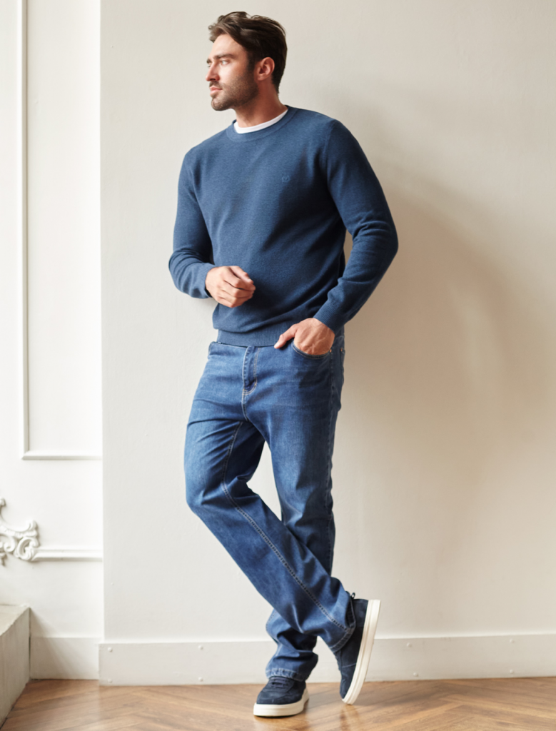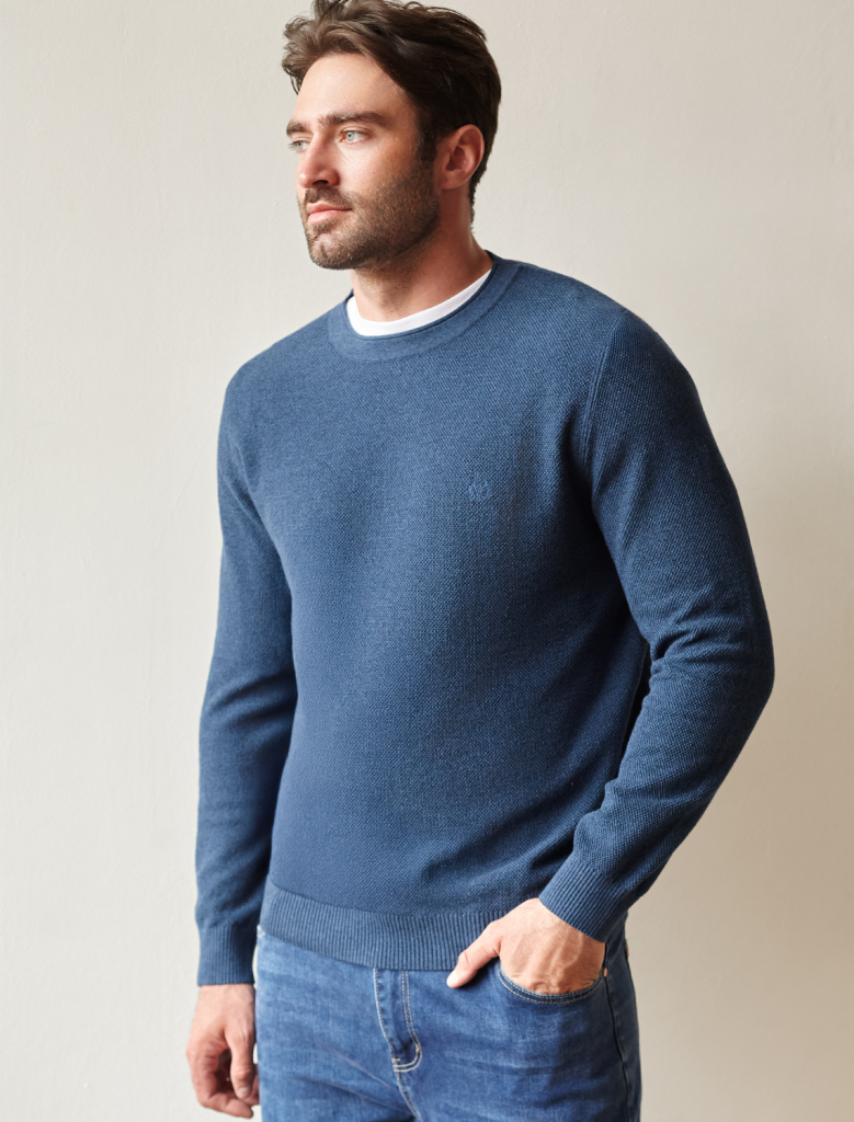 Джемпер фактурной вязки «оксфорд» выполнен из хлопковой пряжи с добавлением нейлона. Модель с круглым воротом дополнена вышитым логотипом бренда и классическим металлическим лого. Изделие гармонично впишется в образ как с брюками, так и с джинсами. Вторым слоем к контрастной футболке. Хлопковая пряжа хорошо сохраняет тепло при этом, не перегревая тело. Нейлон в составе способствует формоустойчивости.