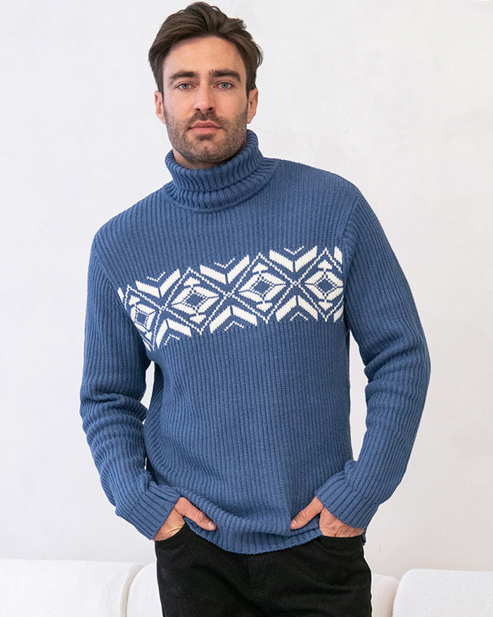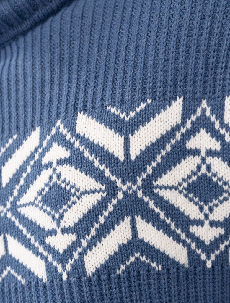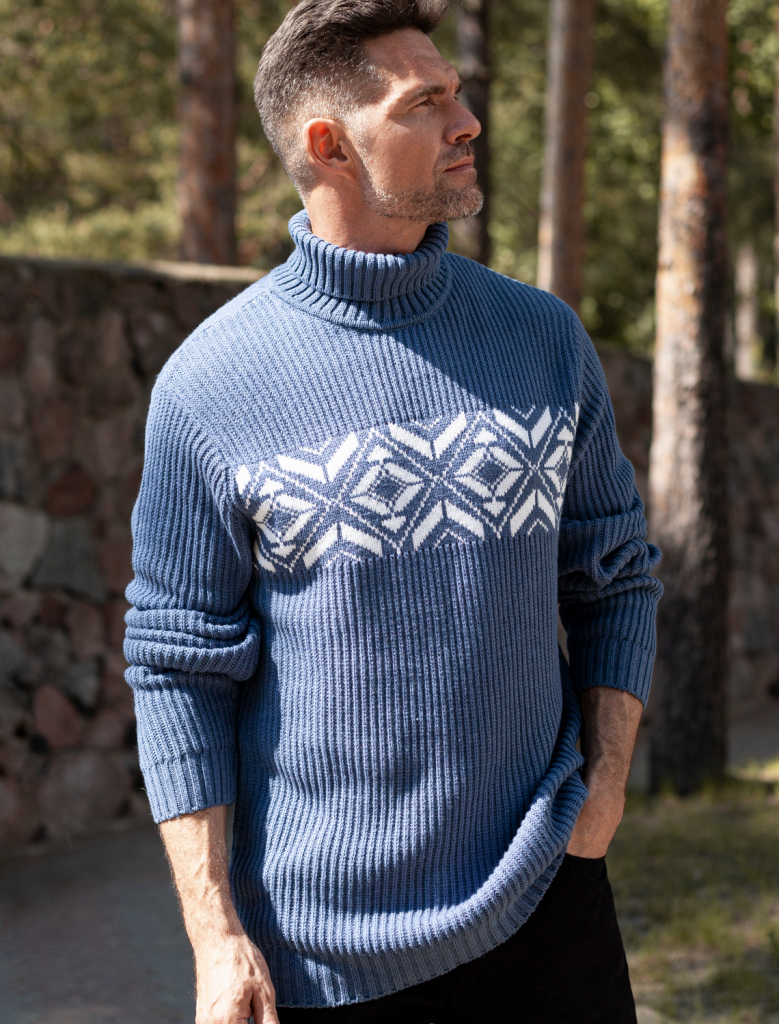Свитер крупной фактурной вязки выполнен из мягкой хлопковой пряжи с акрилом. Теплая фактура изделия подчеркнута скандинавским узором. Длинный ворот защитит от ветреной погоды и поможет собрать, уютный комплект в расслабленном стиле в осенне-зимний период. Не препятствует циркуляции воздуха, но при этом хорошо сохраняет тепло и не колется, поэтому свитер комфортно носить даже на голое тело. Модель дополнена фирменным логотипом бренда.