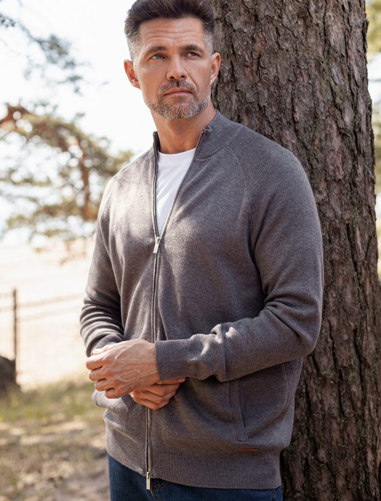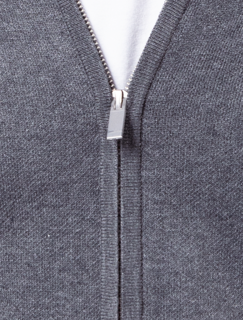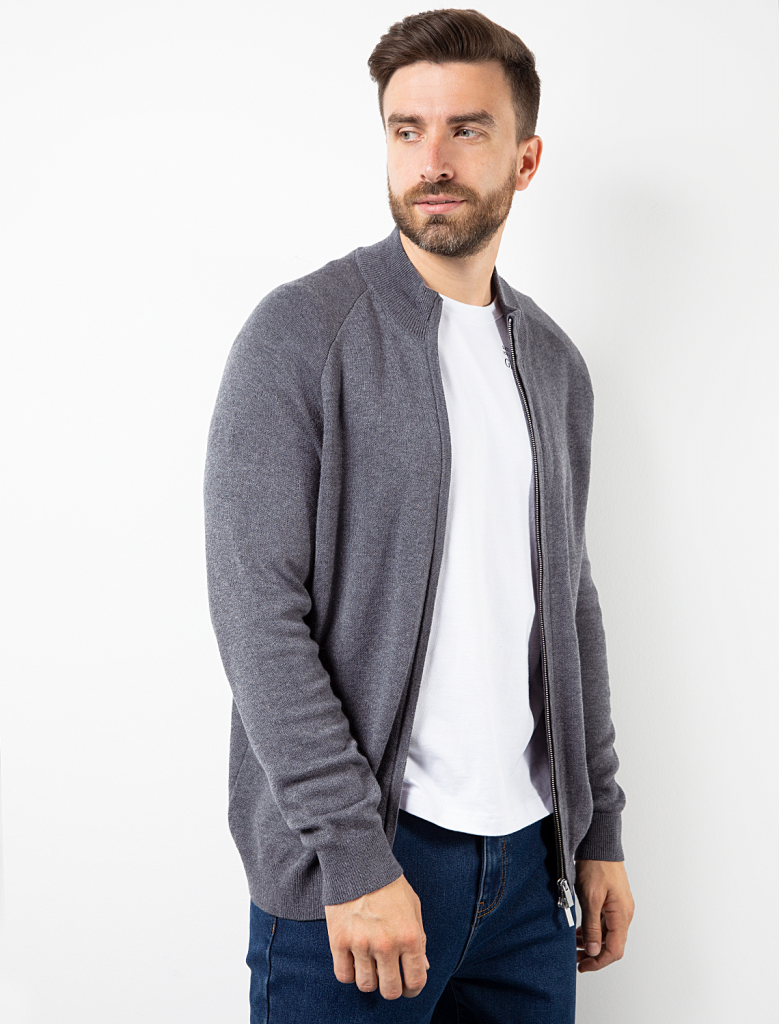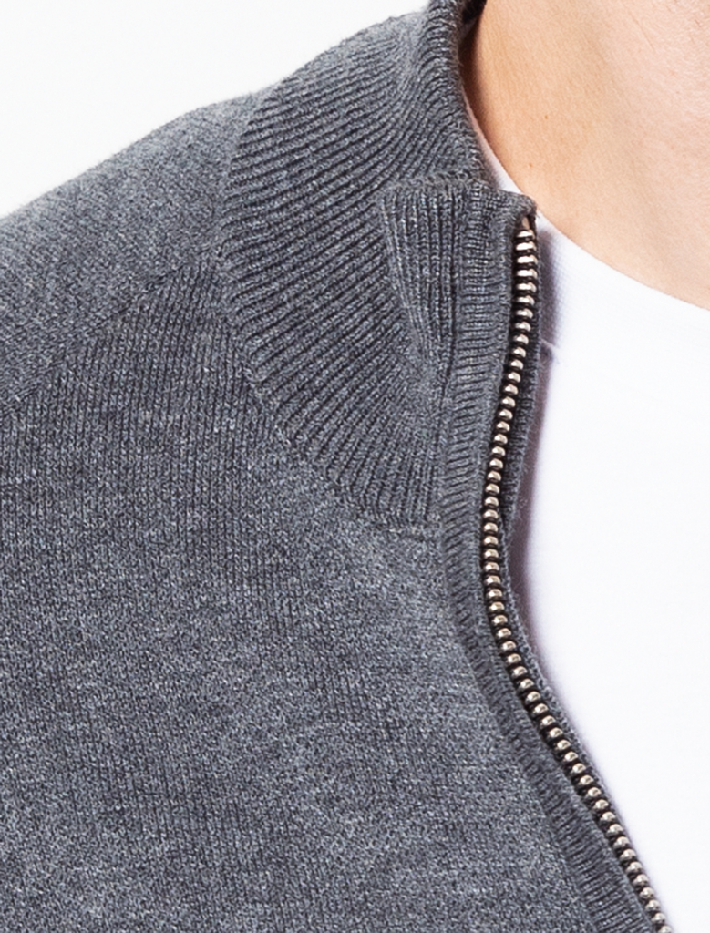 Темно-серый джемпер с длинными рукавами поддержит образы любой палитры и сложности. За многофункциональность отвечают лаконичный крой и застежка на молнию. Изделие связано из премиального хлопка с добавлением акрила, которые не дадут замерзнуть в прохладный день на улице, но при этом не перегревает в помещении.