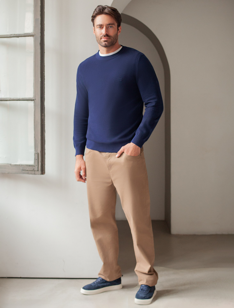 Джемпер фактурной вязки «оксфорд» выполнен из хлопковой пряжи с добавлением нейлона. Модель с круглым воротом дополнена вышитым логотипом бренда и классическим металлическим лого. Изделие гармонично впишется в образ как с брюками, так и с джинсами. Вторым слоем к контрастной футболке. Хлопковая пряжа хорошо сохраняет тепло при этом, не перегревая тело. Нейлон в составе способствует формоустойчивости.