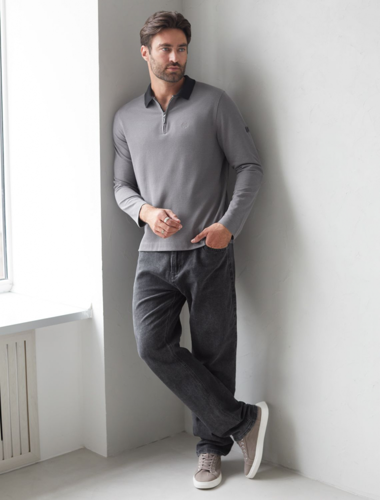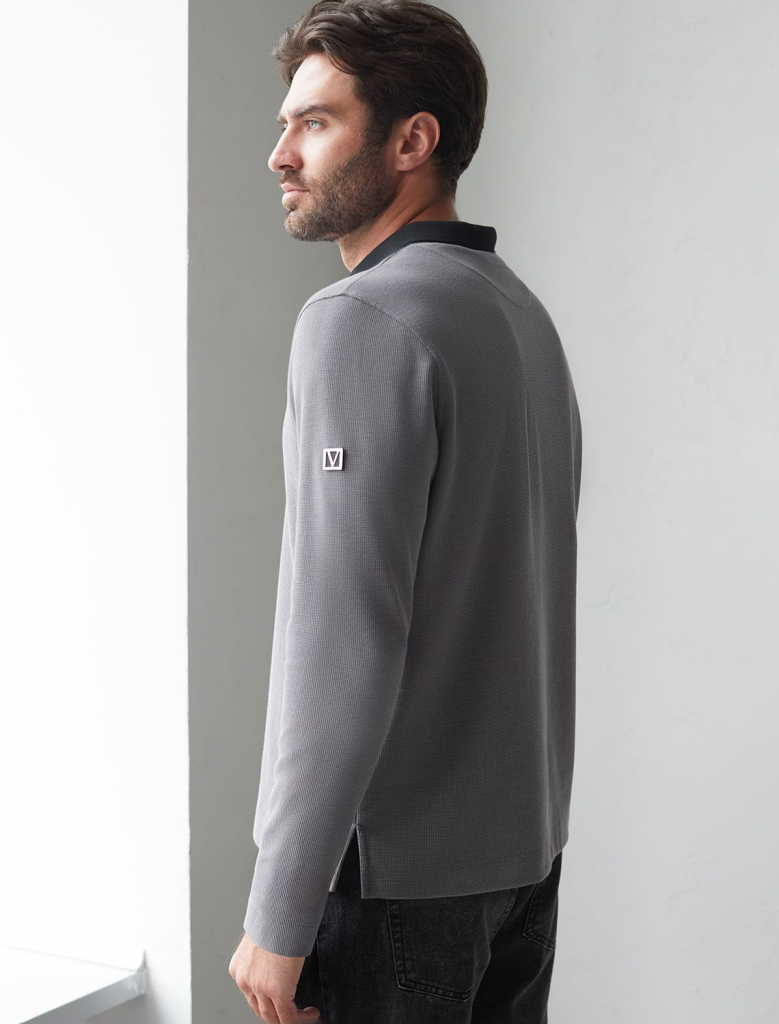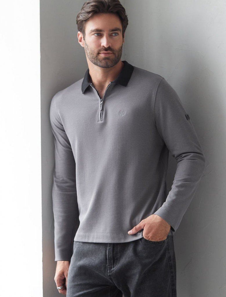 Стильный лонгслив темно-серого цвета с плетеным воротником поло с застежкой на молнию выполнен из премиального хлопка в сочетании с эластаном .Невероятно мягкая ткань из натуральных волокон - она едва ощутима на коже и словно обнимает тело. Материал при касании кажется бархатистым, при движении он словно повторяет все мельчайшие линии фигуры. По свойствам материал сочетает в себе практичность и нежность: отлично провускает воздух, сохраняя ощущение свежести в течение всего дня, при этом созраняет тепло в прохладную погоду.Идеально подходит для чувствительной кожи, не вызывает раздражения и дискомфорта. Удобный отложной воротник делает образ современным и стильным, а длинные рукава с манжетами защищают руки при ветреной погоде. Поло хорошо садится по фигуре благодаря добавлению эластичных волокон — такой вариант подходит для мужчин любого роста и размеров, не стесняет движений и создает ощущение свободы и легкости. Лонгслив с молнией дополнен ненавязчивой вышивкой на груди в виде логотипа бренда в тон осн