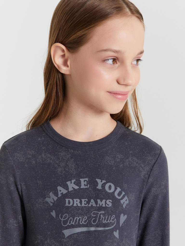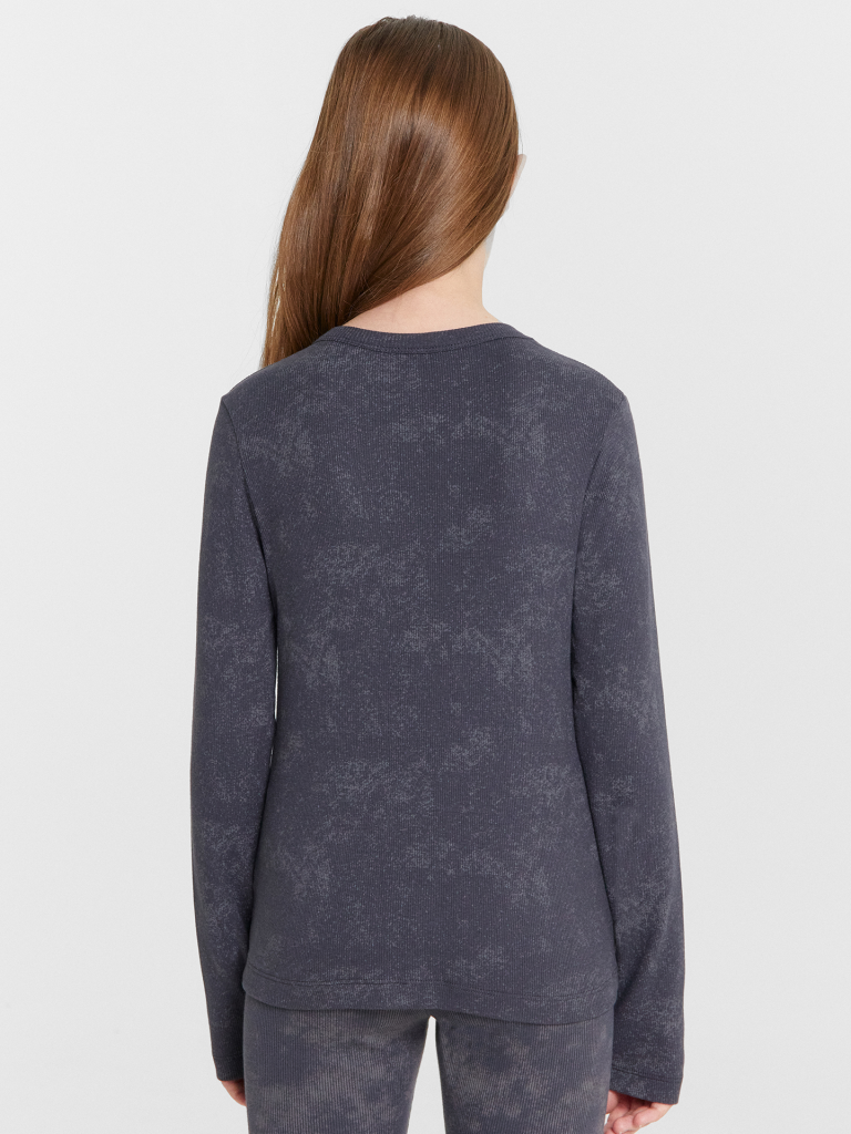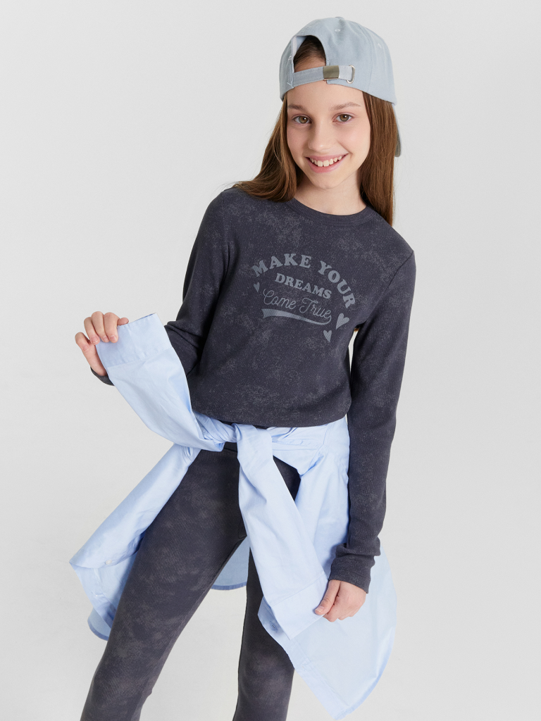 Джемпер прилегающего силуэта. Рукава длинные, втачные. Перед и спинка цельнокроенные. Горловина круглой формы окантована бейкой из рибаны. Низ рукавов и изделия обработаны на 2-х игольной плоскошовной машине швом в подгибку.