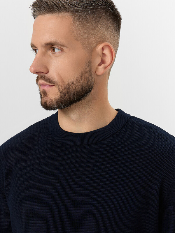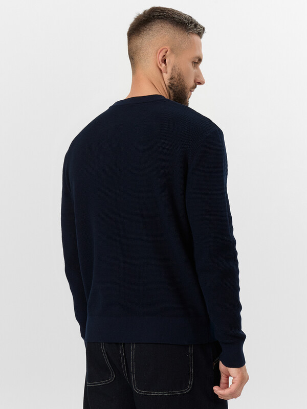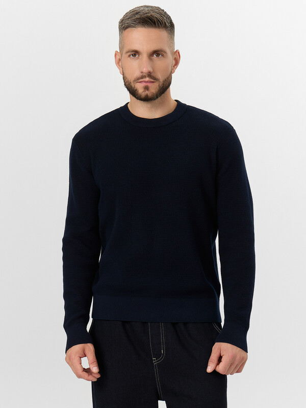 Мужской джемпер синего цвета — это универсальная модель для создания лаконичных и стильных образов. Джемпер выполнен из хлопка, который обеспечивает мягкость, воздухопроницаемость и комфорт. Классический прямой крой, длинные рукава и круглая горловина делают его идеальным базовым элементом гардероба.