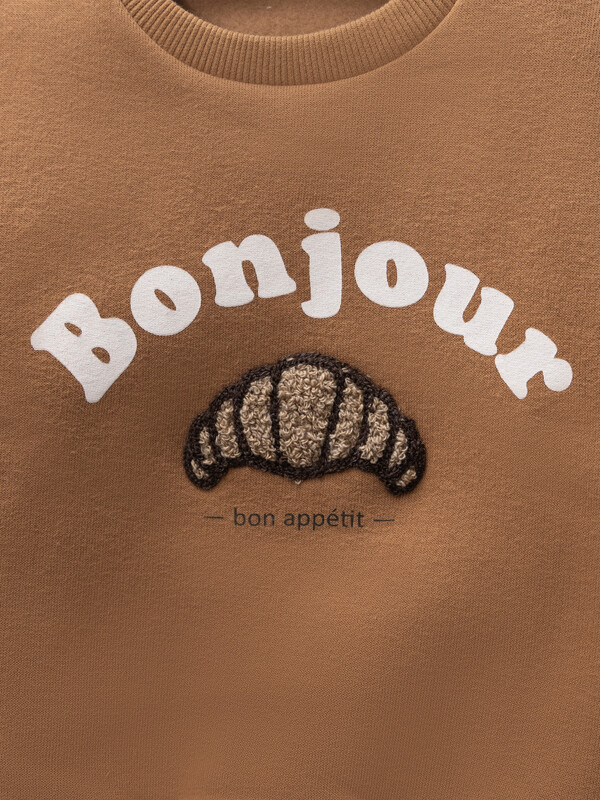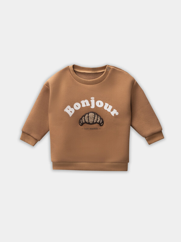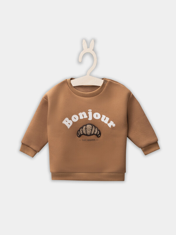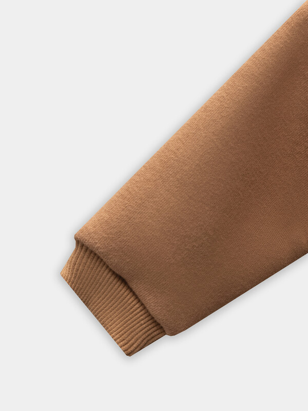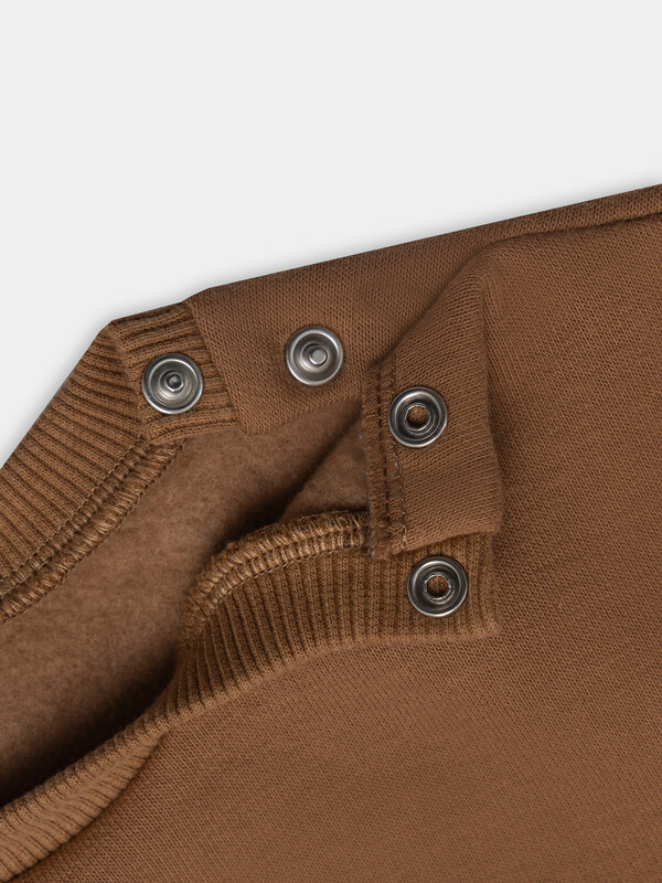 Джемпер свободного силуэта, выполнен из футера с начесом. Спинка и перед цельнокроенные. Рукава втачные, длинные, одношовные. Горловина круглая, окантована бейкой из трикотажной рибаны 2*2 R-6, R22-062.01.360, 96% хлопок; 4% эластан, 230 гр, 165 см. На левом плече застежка книппер 9 мм - 2 шт. По низу изделия притачные манжеты из трикотажной рибаны 2*2 R-6,R22-062.01.360, 96% хлопок; 4% эластан, 230 гр, 165 см.