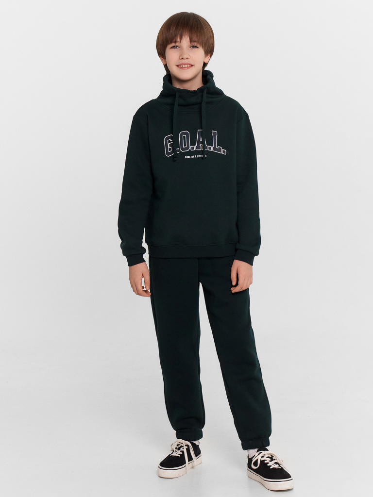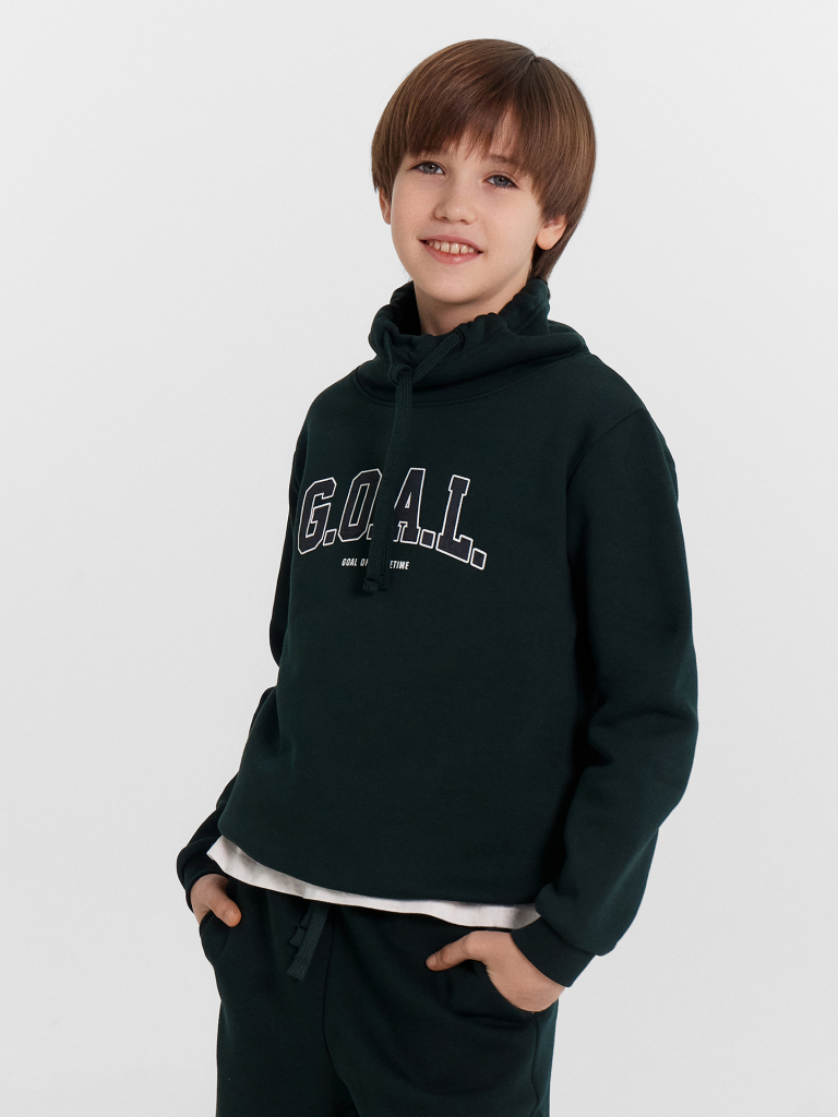 Джемпер для мальчиков, выполненный из утепленного трикотажного футера с нежным подчесом, станет отличным выбором для прохладных дней. Материал обеспечивает комфорт и тепло, делая его идеальным для активных мальчиков. Отрезные манжеты на длинных рукавах и пояс, выполненные из рибаны, добавляют изделию дополнительную прочность и уют. Прямой силуэт модели и длина до бедер создают стильный и универсальный образ, который легко сочетается с различными предметами гардероба. Особенной изюминкой этого джемпера является воротник-хомут со шнурком, который придает ему уникальность и стильный акцент. Необычно, комфортно, стильно!