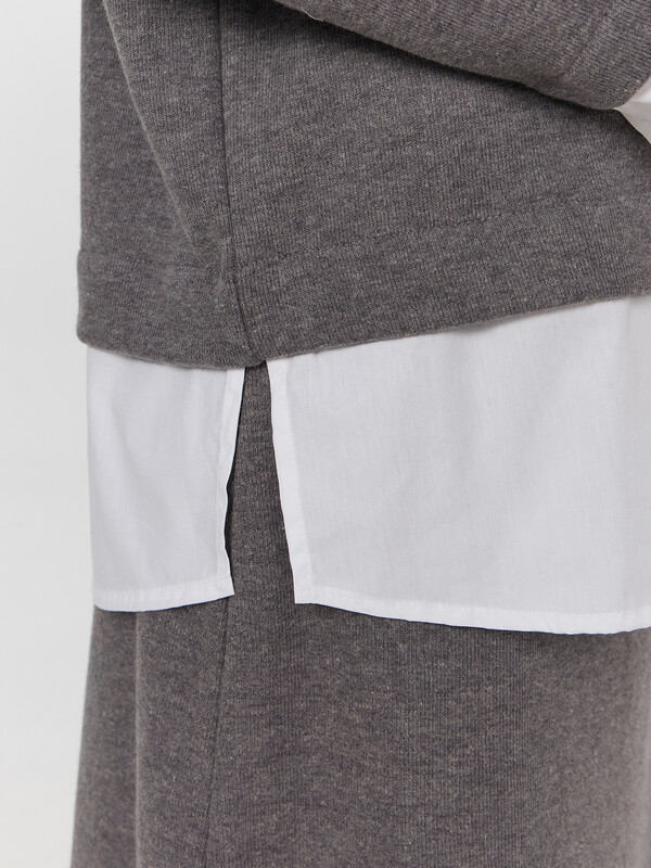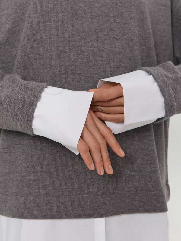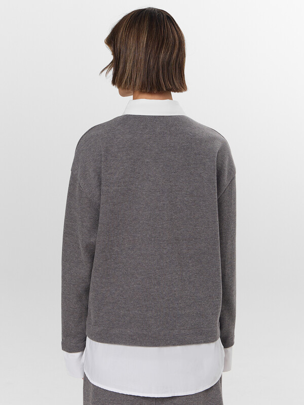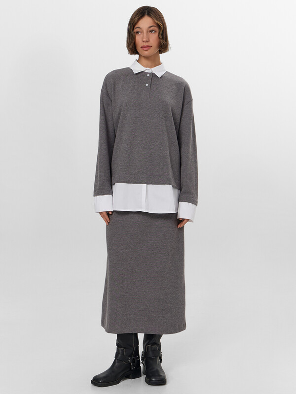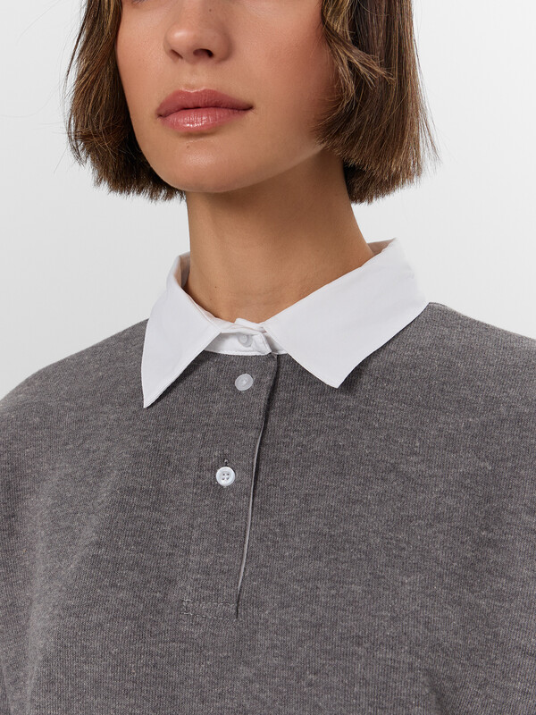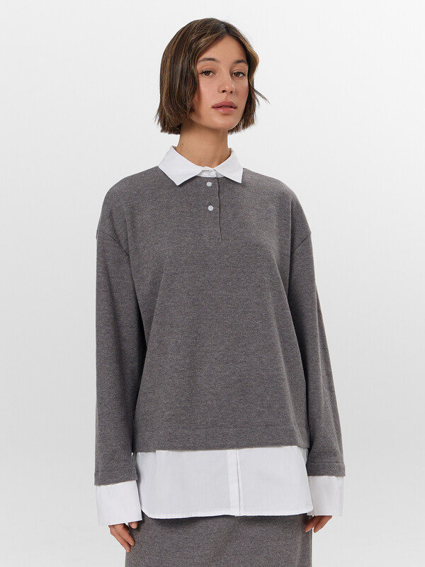 Джемпер сочетает практичность и стиль: имитация рубашки создает иллюзию многослойности, добавляя образу сложность и глубину. Плотный трикотаж на основе хлопка с добавлением полиэстера отлично держит форму, не сминается и сохраняет комфорт в течение всего дня.
