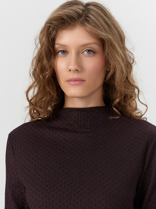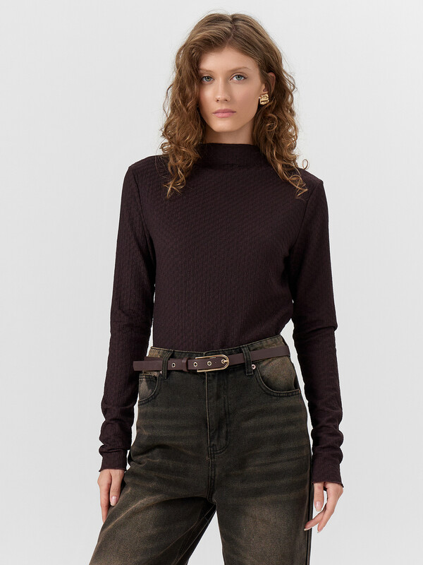Женский джемпер прилегающего кроя — это элегантная и утонченная модель, прекрасно подчеркивающая фигуру и создающая аккуратный силуэт. Вырез горловины в форме лодочки со стойкой добавляет образу нежности и изысканности, делая акцент на линии шеи и ключицах. Длинные рукава обеспечивают тепло и делают джемпер универсальным для демисезонной носки. Нижние срезы изделия и рукавов аккуратно обработаны швом вподгибку, что улучшает внешний вид и повышает долговечность вещи. Материал, из которого выполнен джемпер, содержит искусственные волокна и эластан, благодаря чему изделие хорошо тянется, комфортно сидит на теле и не теряет форму даже после множества стирок. Эта модель легко сочетается с юбками, брюками или джинсами, подходя как для делового стиля, так и для повседневных образов.