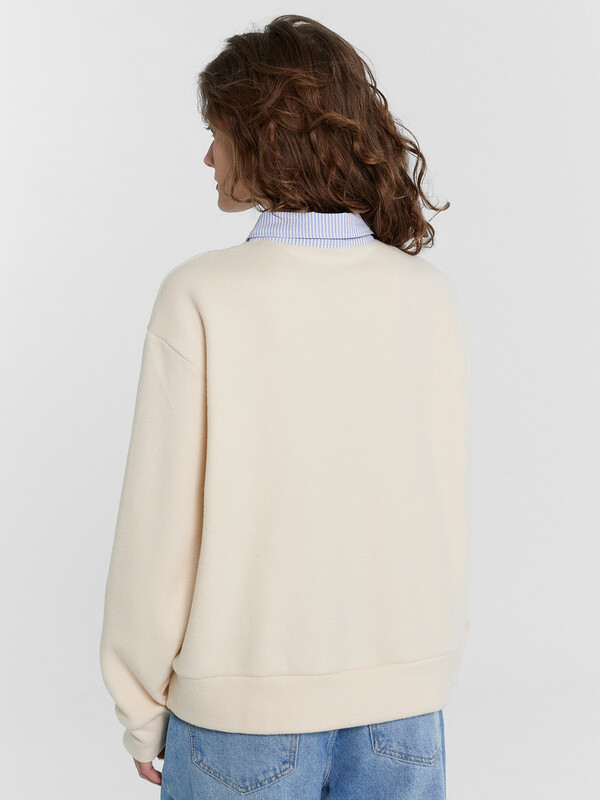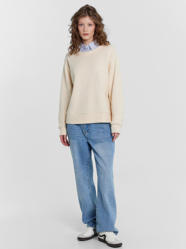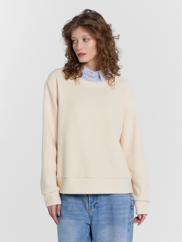 Женский джемпер свободного кроя выполнен из нежного материала селаник, который славится своей мягкостью и теплотой. Этот материал также отличается высокой износостойкостью и легкостью в уходе, что делает его идеальным выбором для повседневной одежды. Горловина круглой формы с воротником, имитирующим рубашку, и застежкой на пуговицу придает джемперу оригинальный и стильный вид. Длинные рукава со спущенной линией плеча и манжетами обеспечивают свободу движений и добавляют образу расслабленности и комфорта.