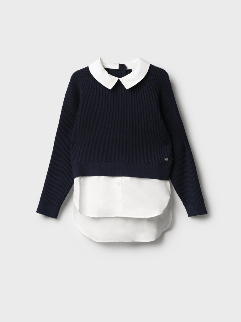 > Джемпер трикотажный для девочек белый,тёмно-синий