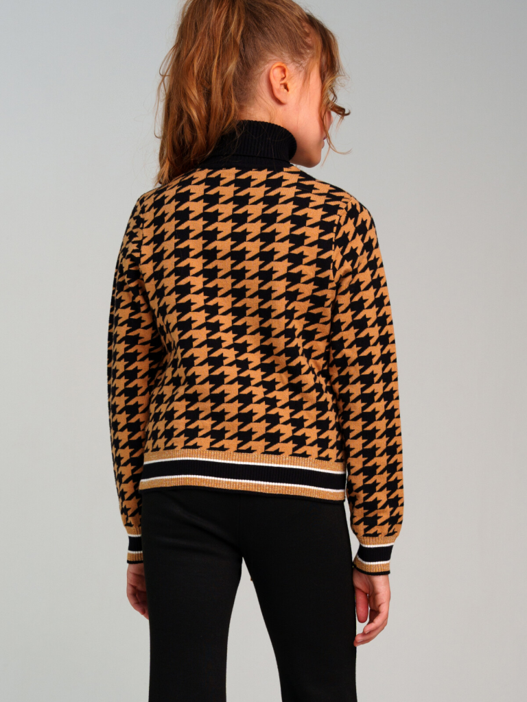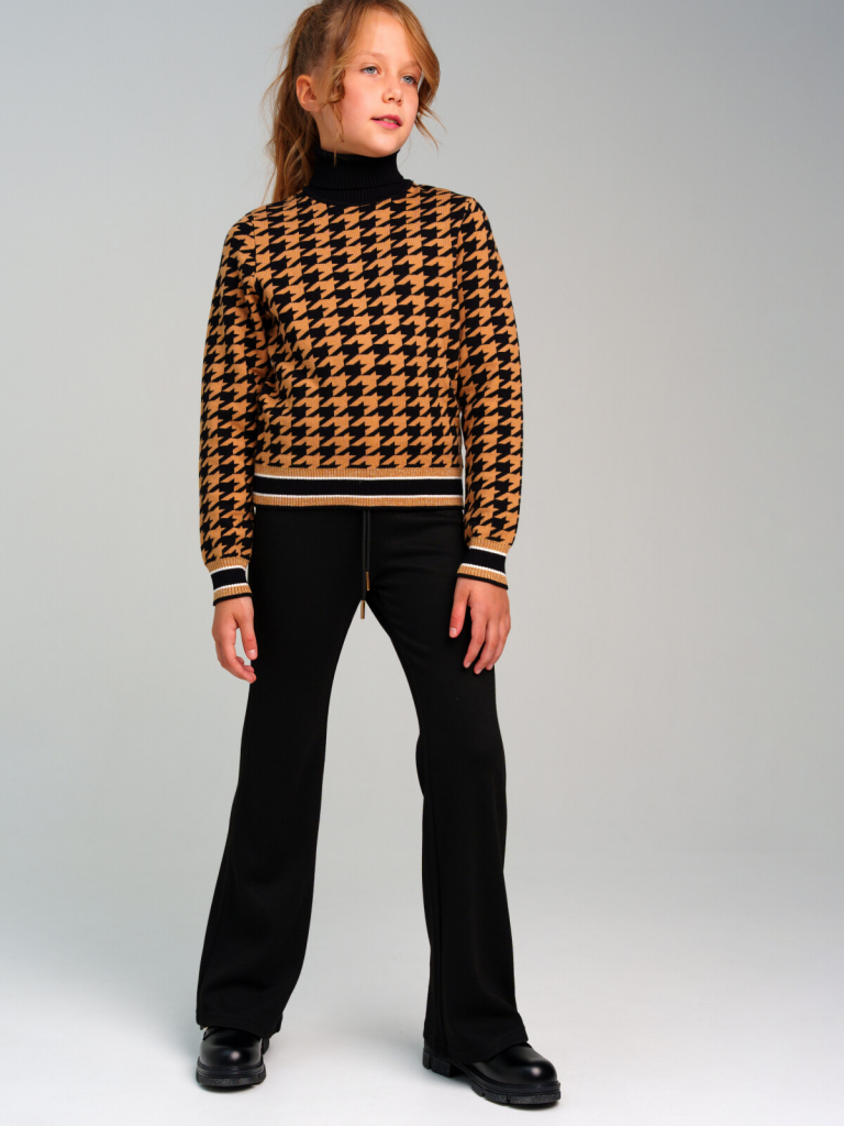 Свитер для девочки подростка. Модный свитер жаккардовой вязки с высоким содержанием вискозы. Вискоза хорошо поглощает влагу, отлично пропускают воздух. Изделия приятны к телу, и не вызывают раздражения. Модель из капсульной коллекции BLACK CHIC (БЛЭК ШИК). Соберите полный образ в едином стиле!