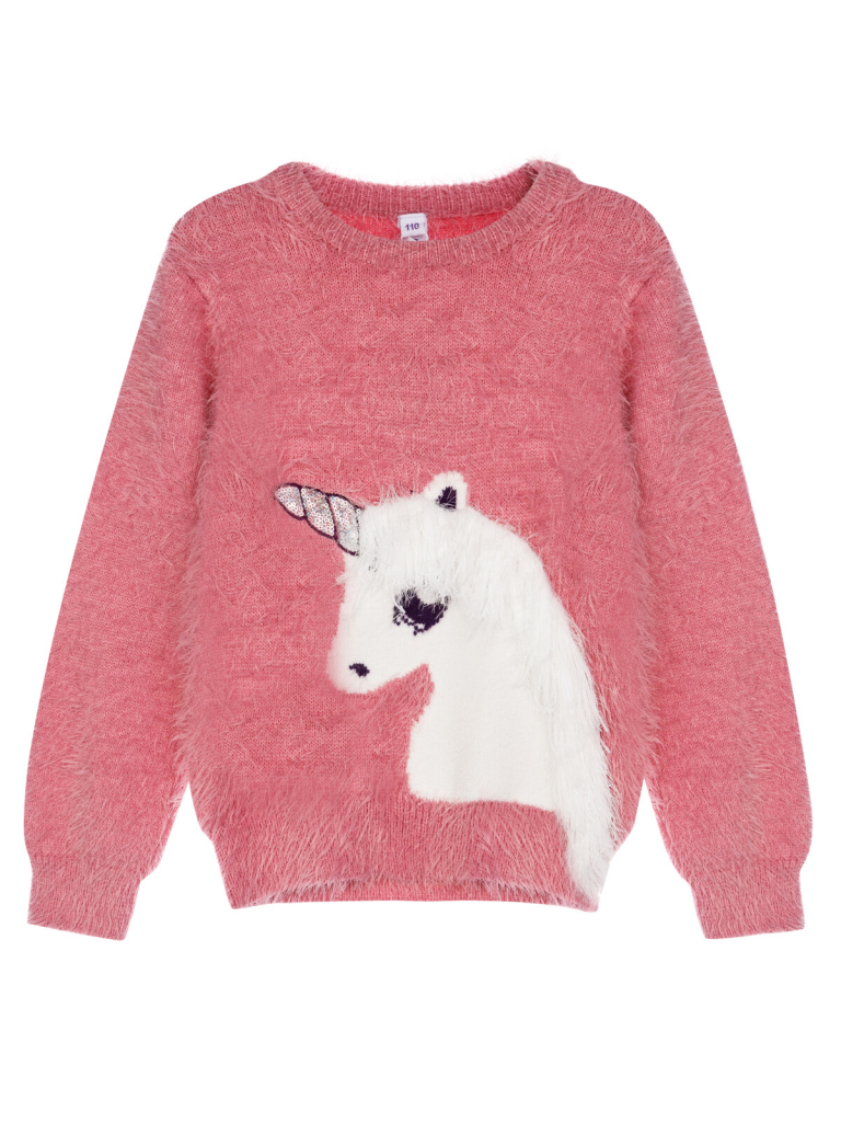 Детский джемпер для девочки. Джемпер из вязаного трикотажа с содержанием хлопка. Модель из капсульной коллекции UNICORN KUROMI (ЮНИКОРН КОРОМИ). Соберите полный образ в едином стиле! Свитер будет актуален для детского сада, в садик, для прогулок.