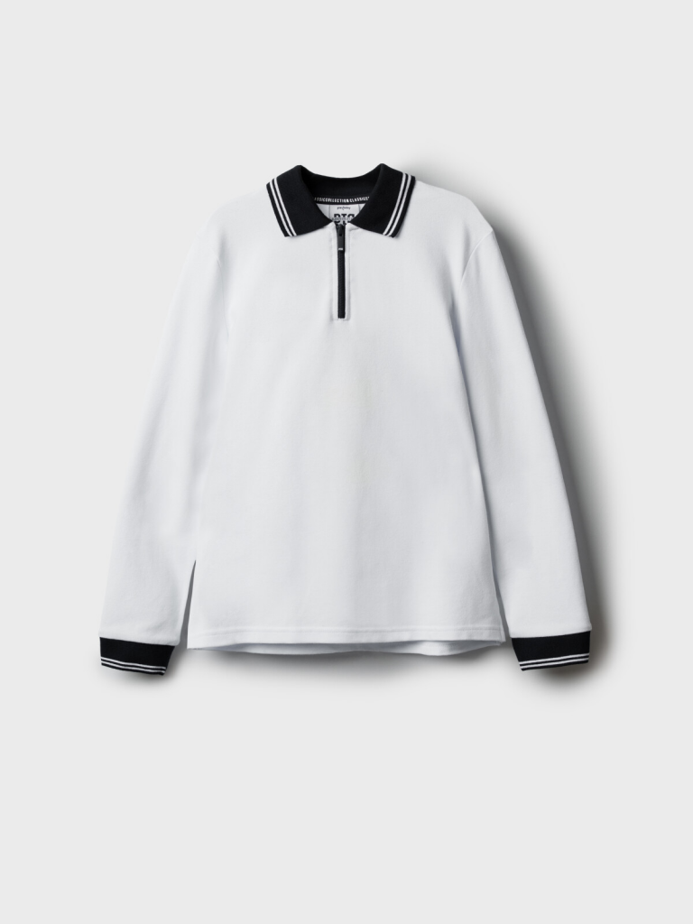 Классическое белое поло с длинным рукавом для мальчикаИдеальный вариант для школы - стильное и практичное белое поло с длинным рукавом станет универсальной основой школьного гардероба. Модель выполнена из качественного хлопкового пике, что обеспечивает комфорт в течение всего учебного дня.Ключевые особенности:+ Застежка по полочке на молнию - удобно надевать и регулировать воротник+ Классический крой regular - комфортная посадка без стеснения движений+ Дышащая ткань пике - приятная к телу и износостойкая+ Универсальный белый цвет - легко комбинируется со школьной формойПочему стоит выбрать:Строгий и опрятный вид - подходит для мальчика-школьника и подросткаУдобная застежка и качественные материалыПодходит как в школу, так и для повседневной носкиДополните школьный образ этим стильным поло - ваш ребенок будет выглядеть аккуратно и чувствовать себя комфортно!