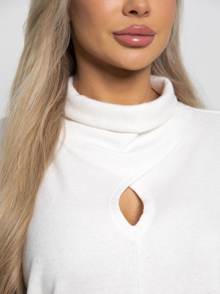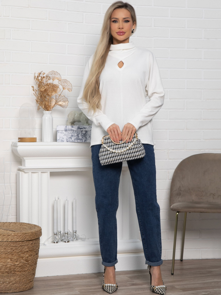 Разнообразьте свой гардероб стильным джемпером, который станет универсальным элементом вашего образа. Изготовленная из мягкого вязаного трикотажа, она обеспечит вам комфорт на протяжении всего дня. Джемпер имеет спущенные рукава и горловину в форме хомута. Каплевидный вырез привлекает внимание, придавая образу изысканности. Эта модель станет основой для создания разнообразных стильных образов. Она идеально подходит для прохладных вечеров и осенних прогулок, и непременно займёт почётное место в вашем гардеробе.