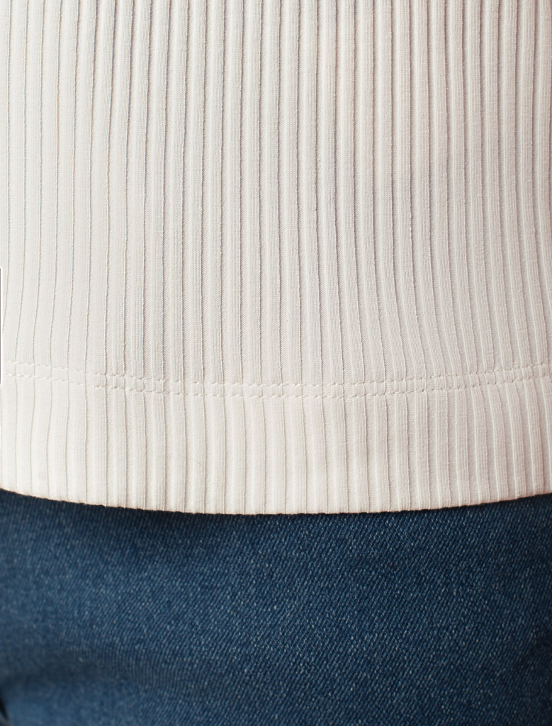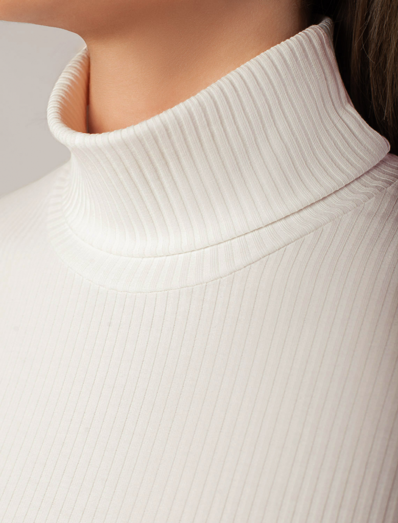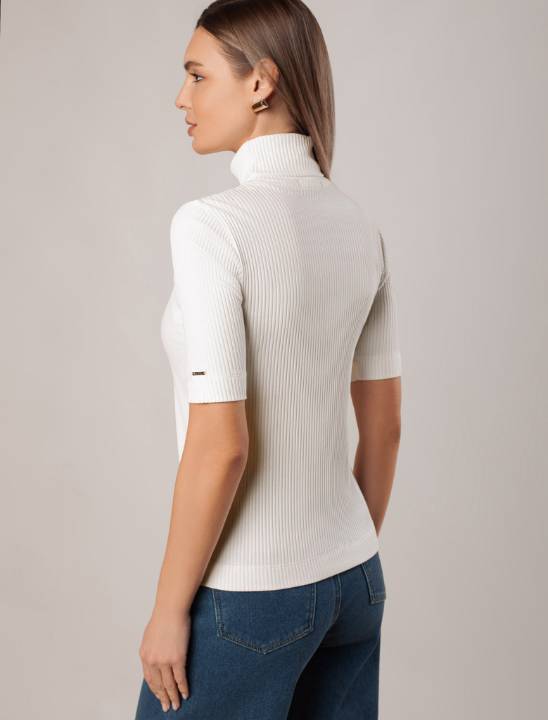 Водолазка с коротким рукавом выполнена из фактурного трикотажа в рубчик. Модель идеально сидит по фигуре не сковывая движения. Хлопковый трикотаж поддерживает оптимальную температуру тела, поэтому в изделии будет комфортно в течении всего дня. Наличие эластана в составе гарантирует формоустойчивости. Водолазка отлично впишется в деловой дресс-код и подойдет для повседневного аутфита.