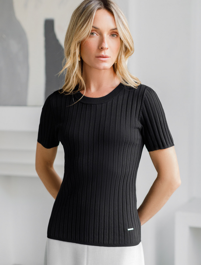 Джемпер тонкой вязки из вискозы с нейлоном. Модель с круглым вырезом прилегающего силуэта. Мягкая очень приятная к коже пряжа хорошо держит форму и гарантирует комфорт во время носки в течение всего дня. Изделие дополнено фирменным металлическим логотипом бренда.