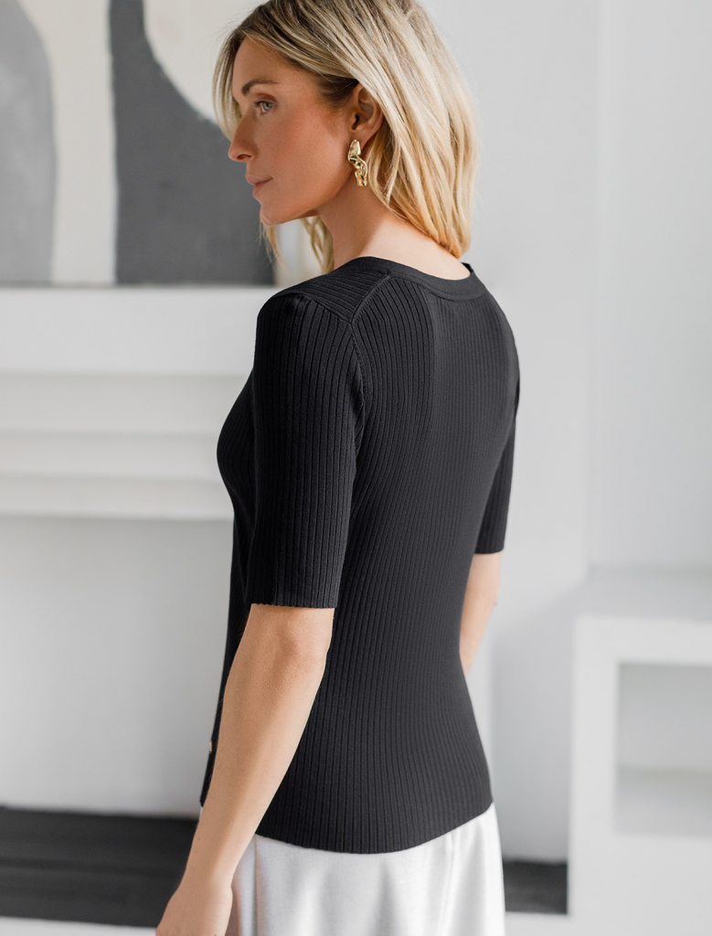 Джемпер тонкой вязки из вискозы с нейлоном. Модель с V- вырезом прилегающего силуэта дополнена золотистыми пуговицами. Мягкая очень приятная к коже пряжа хорошо держит форму и гарантирует комфорт во время носки в течение всего дня. Изделие дополнено фирменным металлическим логотипом бренда.