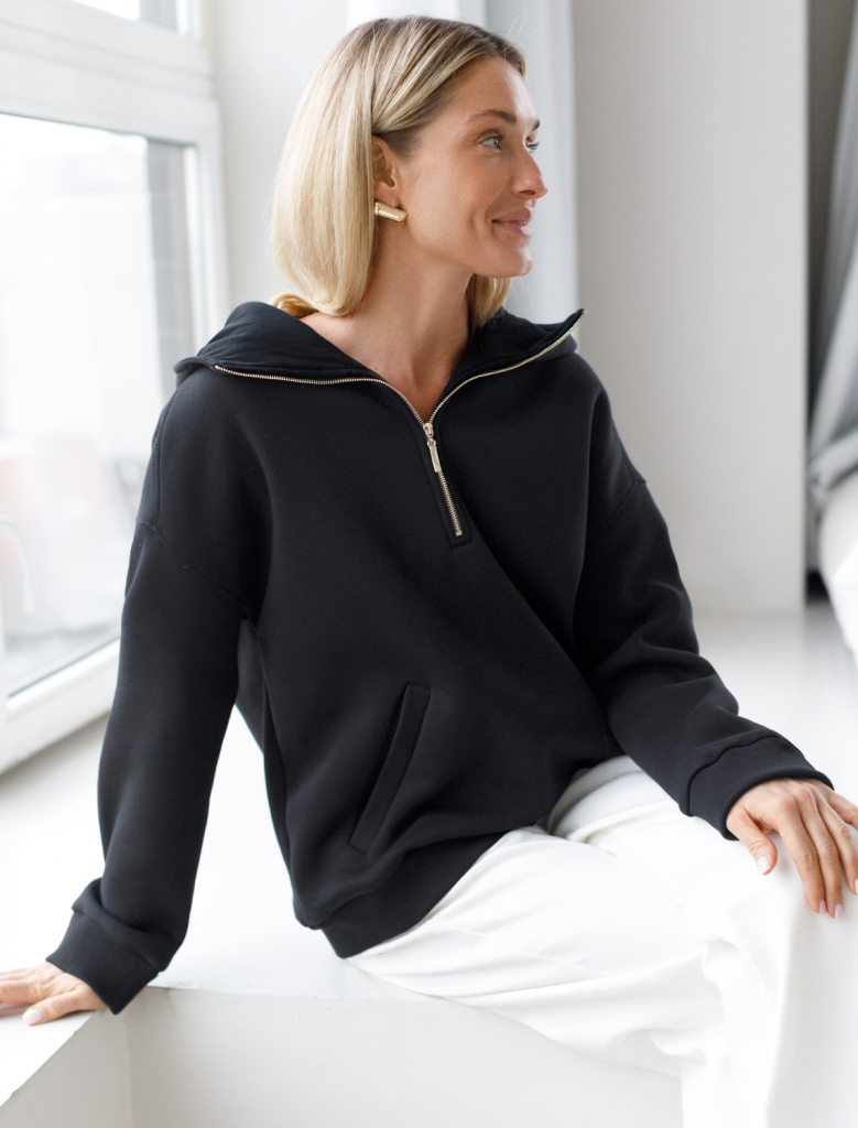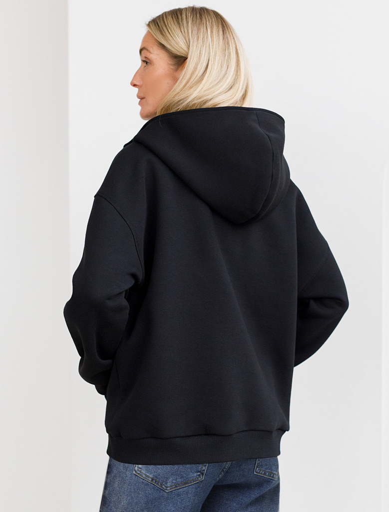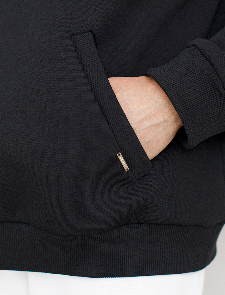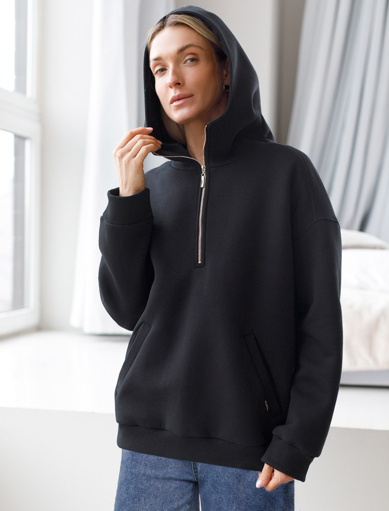 Худи с воротом на молнии выполнено из премиального футера трехнитки с теплым начесом. Модель дополнена боковыми карманами и золотистой фурнитурой, что поддерживает актуальный стиль спорт-шик. Свободный крой подходит для любой фигуры. Ранней осенью или поздней весной можно носить в качестве верхней одежды. Сочетается в костюме с брюками D44.133
