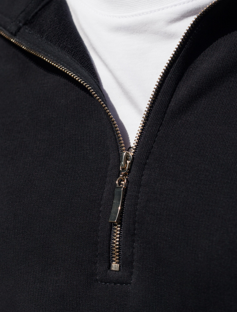 Уютный и комфортный вариант для прохладной погоды – стильный джемпер с воротом на молнии практичного черного цвета. Изготовлен из премиального футера двухнитки с добавлением эластана. Материал сохраняет форму при длительном ношении и после многократных стирок, его мягкая текстура дарит ощущение уюта и тепла.Свободный крой джемпера позволяет не ограничивать движения, что особенно важно для активного образа жизни.Подойдет на любую женскую фигуру, представлена широкая размерная линейка, большие размеры, легко комбинируется с другими вещами, создавая модные образы в стиле спорт-шик. Этот повседневный джемпер сочетает в себе удобство и актуальность, будет универсальным выбором для отдыха или прогулок.