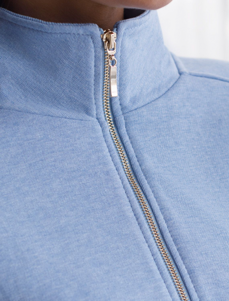 Бомбер голубого цвета с эффектом меланж среднего объема на молнии с карманами из премиального футера двухнитки — это стильный выбор для ценительниц минимализма и комфорта. Натуральный состав обеспечивает дышащий эффект, мягкость и приятные тактильные ощущения, Эластичный материал позволяет свободно двигаться без лишнего стеснения, а также отлично сохраняет форму даже после длительного ношения. Манжеты на рукавах и резинка по низу обеспечивают надежную посадку, сохраняя тепло в прохладную погоду. Повседневный бомбер отличается аккуратным силуэтом без лишнего объема и универсальной длиной, которая идеально подходит для повседневного и спортивного образа. Прорезные карманы по бокам добавляют функциональности, сохраняя при этом стильный внешний вид. Представленная размерная линейка позволяет подобрать оптимальный вариант для любой фигуры и размера, на маленький или плюс сайз, обеспечивая свободу движений без компромиссов по стилю. Этот легкий бомбер станет отличным дополнением к базовому гардеробу, сочетая практичность с элегантностью. Вы можете составить комплект с брюками D44.157 и свитшотом D49.139.