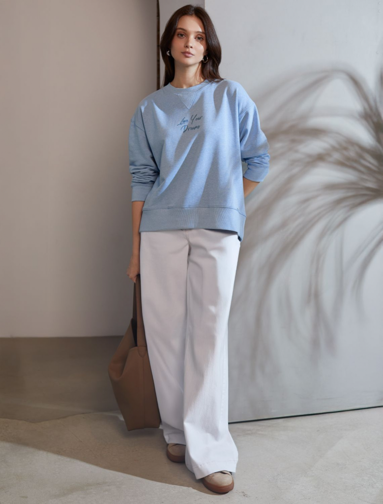 Свободный джемпер с эффектом меланж выполнен из мягкого петельчатого футера двухнитки с добавлением эластана, что обеспечивает комфортную посадку и комфорт. Материал отличается мягкостью и приятной текстурой, позволяя коже дышать и обеспечивая максимальное удобство при носке, а так же хорошей износостойкостью и сохраняет форму даже после многочисленных стирок. Изделие дополнено лаконичным принтом. Круглый ворот и разрезы по бокам придают свитшоту стильный и современный вид и делают образ расслабленным и непринужденным, такой вариант отлично сядет на большие размеры, подчеркивая достоинства фигуры. .Джемпер идеально подходит для повседневной носки и отлично подойдет тем, кто ценит удобство и свободу движений без компромиссов по стилю. Этот свитшот станет отличным выбором в прохладную погоду в комплекте с бомбером D49,141 или уютным дополнением к домашнему образу в комплекте с брюками D44.157