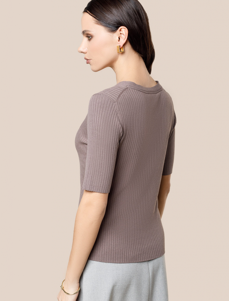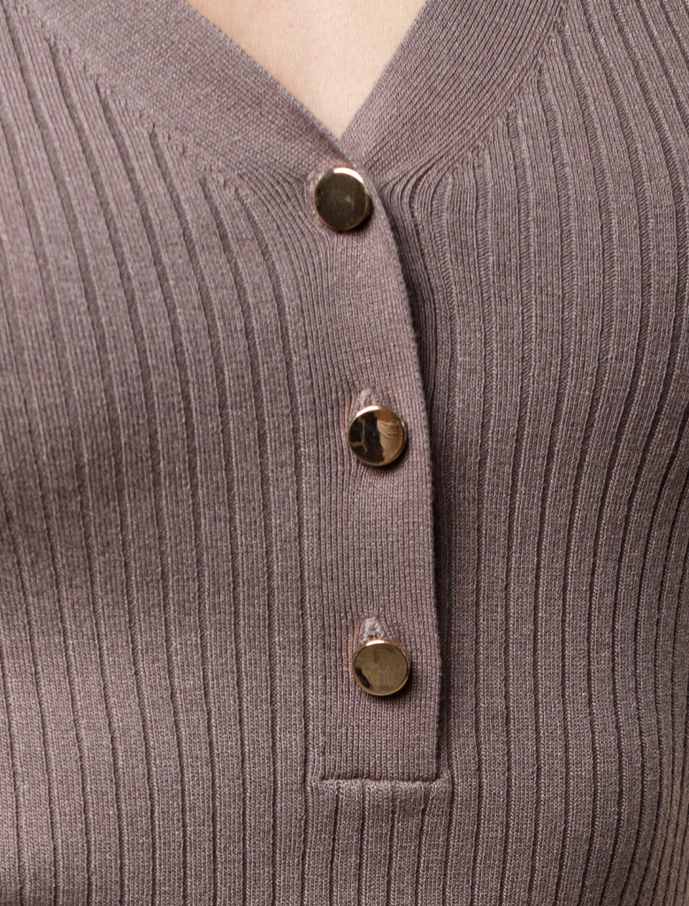 Джемпер тонкой вязки из вискозы с нейлоном. Модель с V- вырезом прилегающего силуэта дополнена золотистыми пуговицами. Мягкая очень приятная к коже пряжа хорошо держит форму и гарантирует комфорт во время носки в течение всего дня. Изделие дополнено фирменным металлическим логотипом бренда.