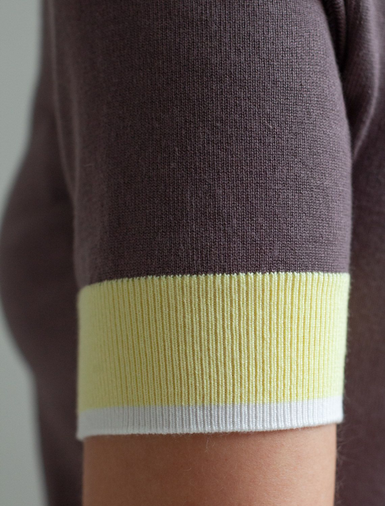 Легкий джемпер кофейного цвета с V-вырезом идеально подходит на весну и лето. Тонкая вязка из вискозы дарит приятный комфорт и ощущение свежести в теплую погоду. Полуприлегающий крой подчеркивает силуэт, а универсальная длина позволяет сочетать джемпер с разными элементами гардероба. V-вырез с пуговицами подчеркивает зону декольте и визуально вытягивает шею, делая фигуру более изящной. Контрастная отделка добавляет стильный акцент, создавая выразительный образ. Джемпер отлично смотрится на больших размерах благодаря продуманному крою и полуприлегающему фасону. Этот джемпер с коротким рукавом станет незаменимой частью гардероба в сезоны, когда хочется легкости и элегантности одновременно. Лаконичный дизайн обеспечивает простоту комбинирования с другими вещами и будет универсальной базой для создания разнообразных комплектов — от офисного до непринужденного городского стиля.