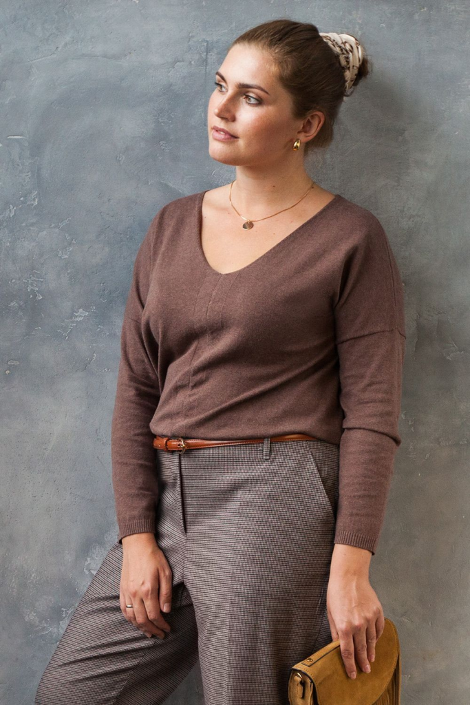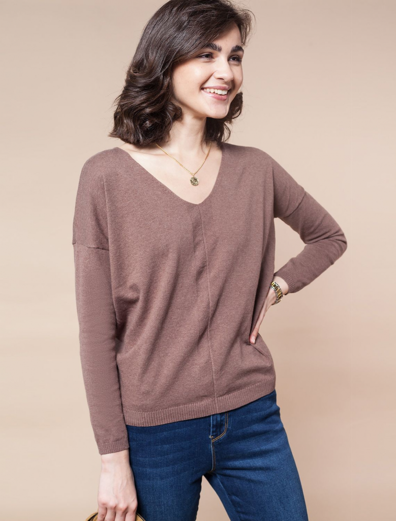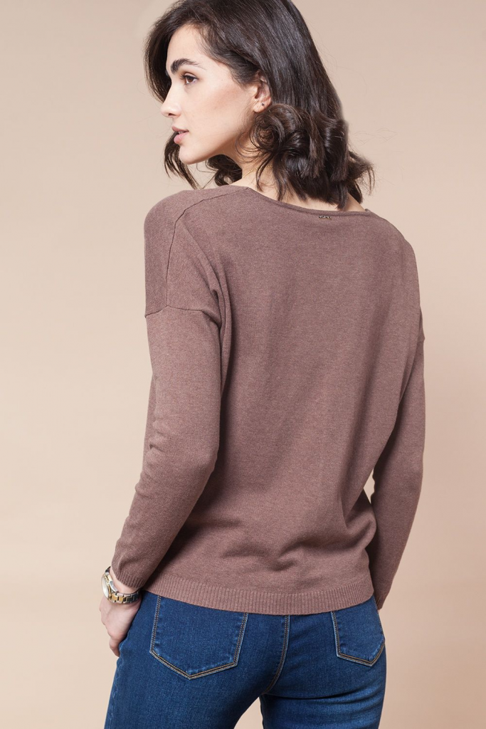 Джемпер выполнен из хлопка с нейлоном, который гарантирует формоустойчивость и яркость цвета надолго. Свободный силуэт с акцентом на узкий рукав, что придает изящества любой фигуре. Важным элементом, который вытягивает силуэт и придает роскоши, является декоративная вязка линии спереди, а также пряжа с эффектом меланж.