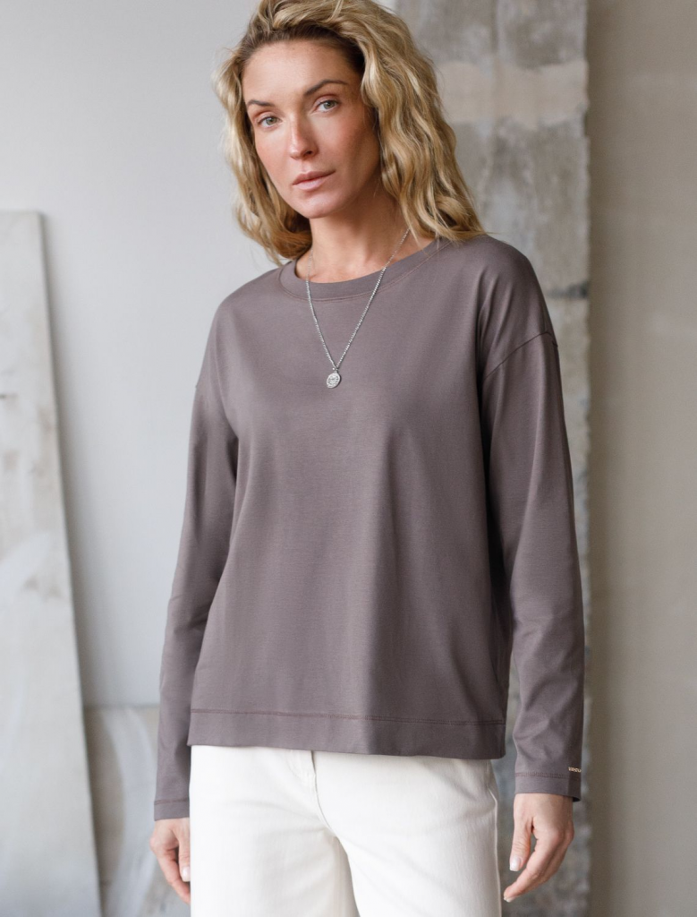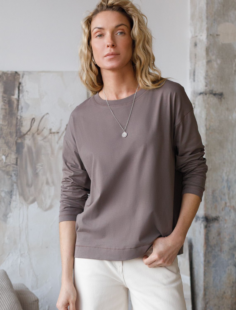 Свободный лонгслив кофейного цвета с длинным рукавом выполнен из премиального хлопка с добавлением эластана, что обеспечивает комфорт и приятные тактильные ощущения. Однотонная расцветка и круглый ворот создают стильный и универсальный образ, который подойдет для повседневного использования. Спущенная линия плеча придает лонгу современный и расслабленный силуэт. Такой лонгслив идеально подходит для весеннего и летнего сезона благодаря легкой и дышащей ткани. Большие размеры позволяют выбрать оптимальный вариант на любую фигуру, обеспечивая свободу движений и удобство на каждый день. Этот комфортный лонгслив станет отличной базой в гардеробе, сочетаясь с различными стилями одежды и создавая простой, но эффектный образ.