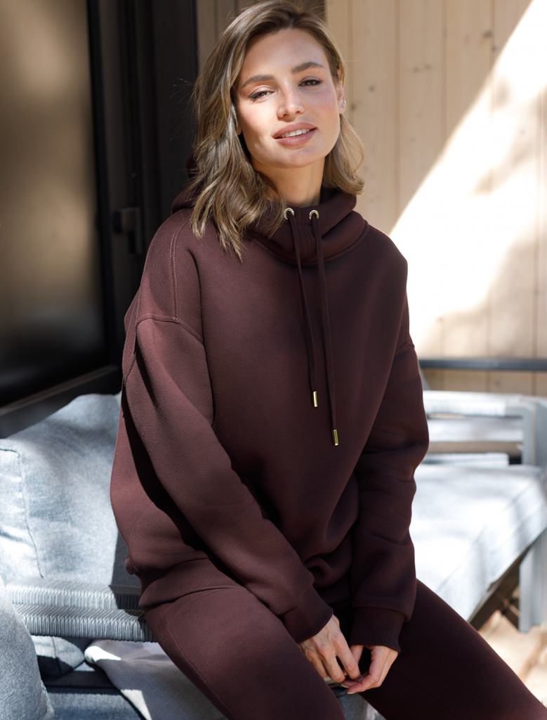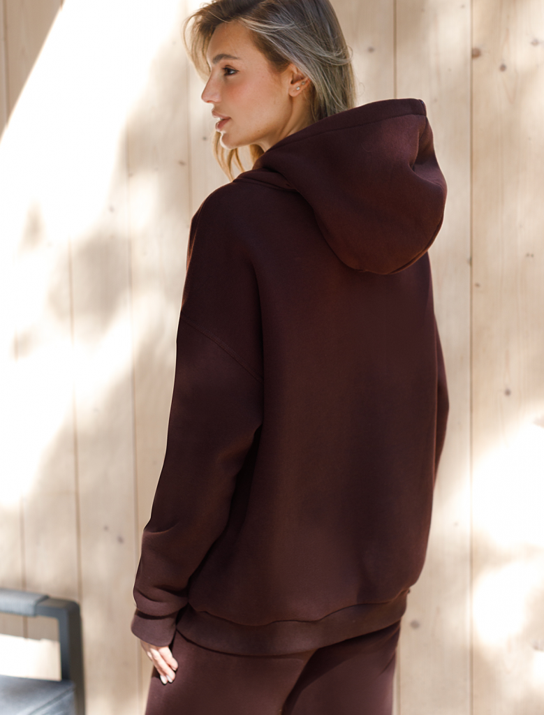 Уютное худи коричневого цвета с цельнокроенным капюшоном и спущенной линией плеча создано для комфорта в холодную погоду. Модель выполнена из премиального футера трехнитки с мягким начесом, что обеспечивает дополнительное тепло и приятные ощущения при носке. Глубокий капюшон дополнен шнуром для регулировки объема, что обеспечивает отличную защиту от ветра и холода, а серебристая фурнитура добавляет стильный акцент к современному худи. Эластичные манжеты на рукавах и по низу обеспечивают дополнительную защиту от продувания, способствуя сохранению тепла внутри. Натуральный хлопок гарантирует дышащий эффект, позволяя сохранять оптимальный микроклимат тела даже при длительном ношении. Благодаря эластану в составе повседневное худи подходит для активного отдыха, вы будете чувствовать себя свободно в любой ситуации.Представлены большие размеры, что позволяет выбрать подходящий вариант для разных типов фигуры, обеспечивая комфортную посадку. Подойдет девушкам плюс сайз, в этом теплом джемпере вы будете чувствова