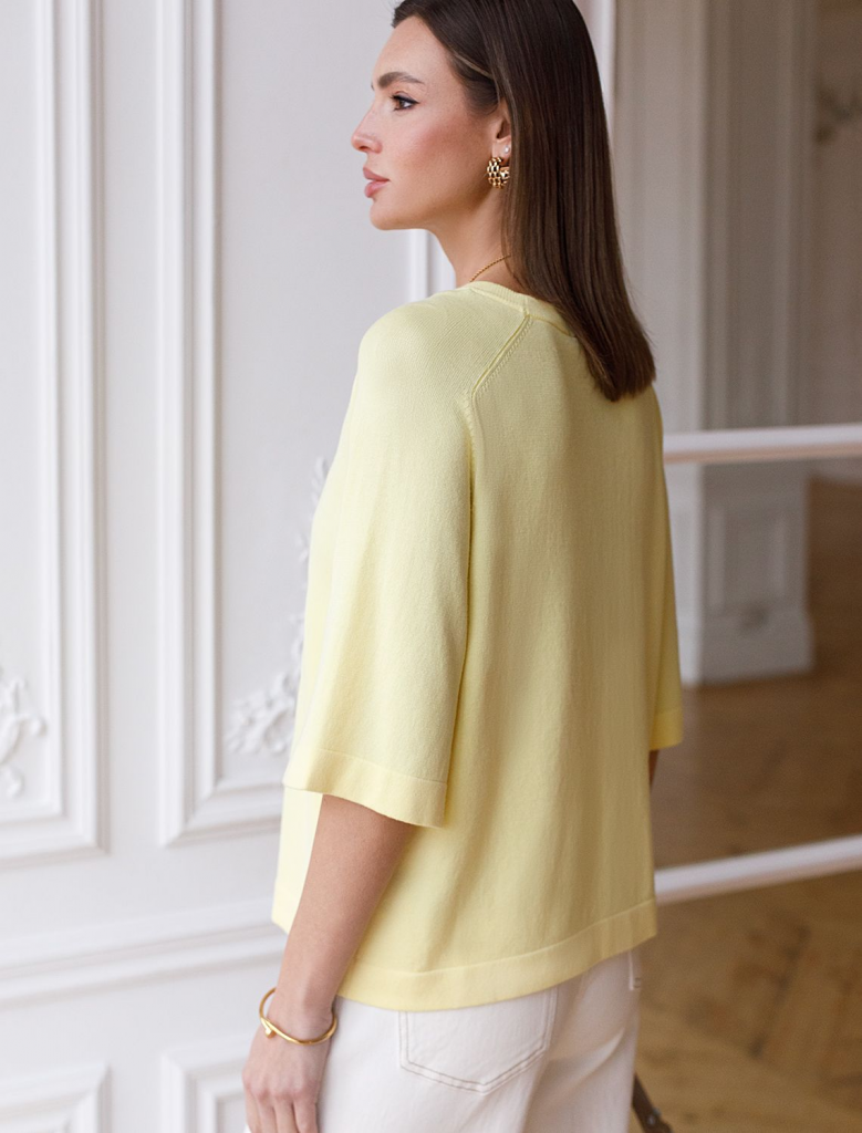 Легкий свободный джемпер димонного цвета с круглым вырезом идеально подходит на весну и лето. Тонкая вязка из вискозы дарит приятный комфорт и ощущение свежести в теплую погоду. Универсальная длина позволяет сочетать джемпер с разными элементами гардероба. Джемпер отлично смотрится на больших размерах благодаря продуманному крою и свободному фасону. Широкие рукава создают воздушность и делают силуэт особенно женственным. Этот джемпер с рукавом 3/4 станет незаменимой частью гардероба в сезоны, когда хочется легкости и элегантности одновременно. Лаконичный дизайн обеспечивает простоту комбинирования с другими вещами и будет универсальной базой для создания разнообразных комплектов — от офисного до непринужденного городского стиля.