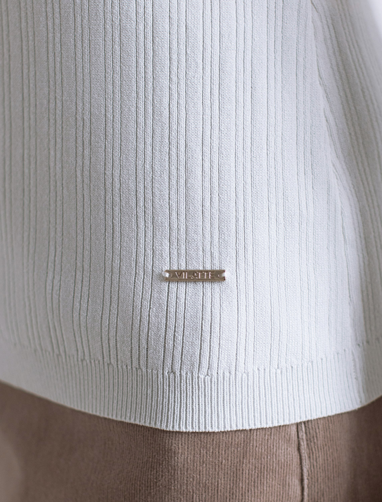 Джемпер тонкой вязки выполнен из вискозы с нейлоном. Модель прилегающего кроя безупречно сидит по фигуре не сковывая движений. Мягкая, приятная к телу пряжа гарантирует комфорт и формоустойчивость в течение долгого времени. Изделие дополнено фирменным металлическим логотипом бренда