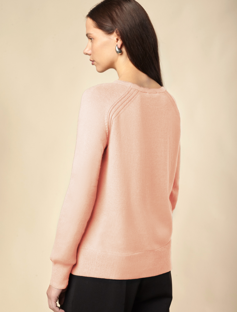 Джемпер тонкой вязки выполнен из хлопка с добавлением кашемира. Лаконичная модель с круглым вырезом дополнена декоративными швами и металлическим логотипом бренда. Мягкая и очень приятная пряжа совершенно не колется, сохраняет тепло при этом не перегревая, гарантируя безупречный комфорт.