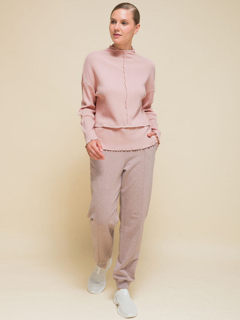 Женский джемпер из трендовой ткани в мелкий рубчик. Изделие свободного кроя со спущенным плечом подарит вам комфорт и свободу движения. Лонгслив из кашкорсе с высоким цельнокроеным воротником-стойкой обеспечивает дополнительную защиту шеи от холода и ветра в прохладную погоду. Декоративные швы и изящная обработка «салатный край» добавляют джемперу элегантности и женственности. Лонгслив однотонный, без принта. За ним легко ухаживать. В составе ткани преобладают качественный хлопок и мягкая вискоза — модель приятна на ощупь и отлично дышит. Эластан помогает сохранять прекрасную форму в течение длительного времени. Джемпер в рубчик представлен в двух трендовых цветах: зелёный и розовый. Размерный ряд: XS (42): S (44): M (46): L (48): XL (50). Джемперы такого фасона подходят как женщинам, так и девушкам, девочкам-подросткам. Такая кофта идеальна для работы, учёбы, отдыха, а также может выступить в роли домашней одежды. Женский джемпер с длинным рукавом можно носить осенью и весной (демисезон), зимой как средний слой одежды и в прохладную погоду летом. Он великолепно сочетается с различными брюками. Это замечательный подарок для мамы, сестры или подруги на Новый год или любой другой праздник.