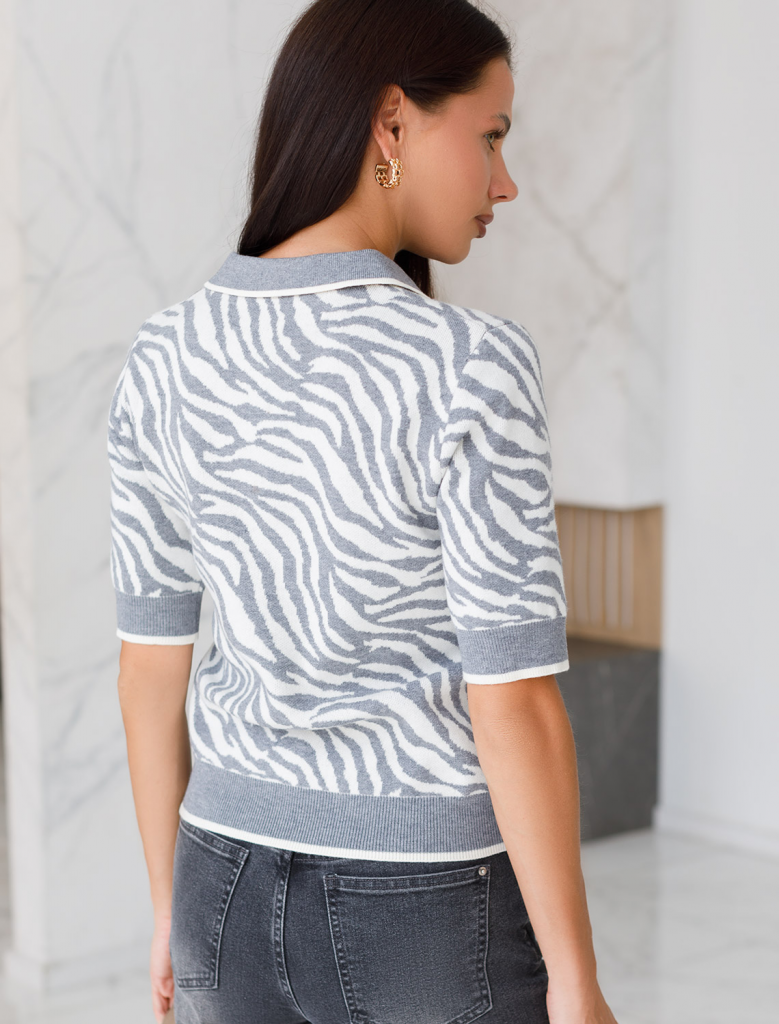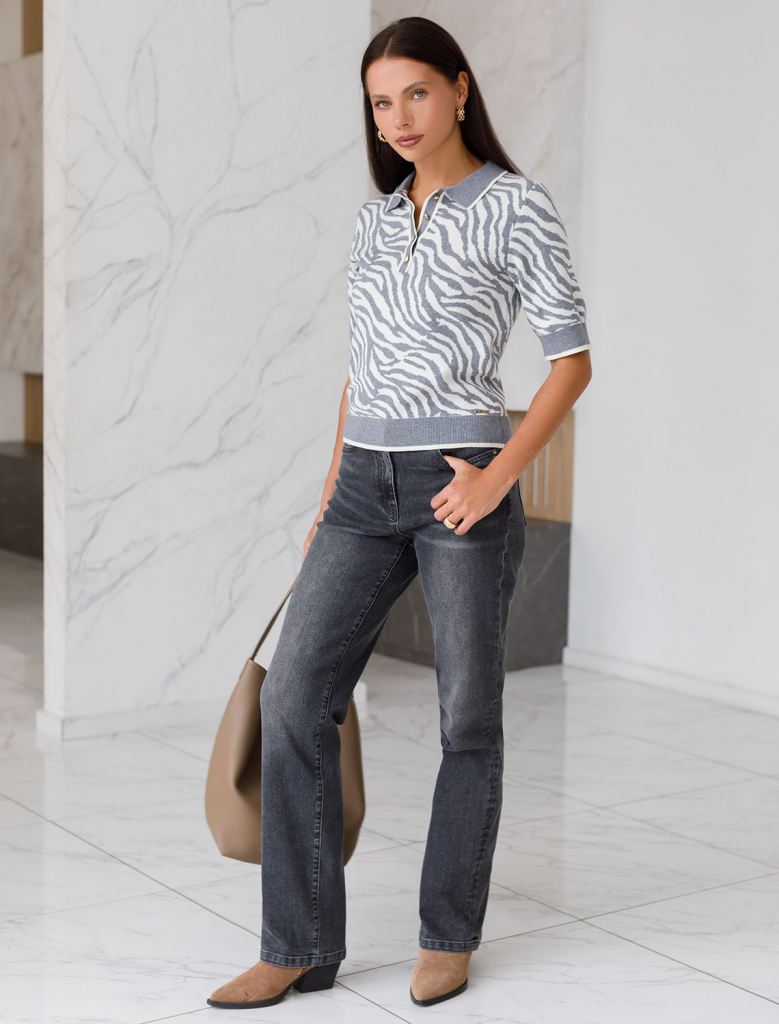 Джемпер жаккардовой вязки выполнено из нежной пряжи на основе вискозы с добавлением кашемира. Модель прямого силуэта с застежкой планкой как у поло. Фигурные золотистые пуговицы вносят изысканности и роскоши. Изделие приятно ощущается на теле и поддерживает комфортный микроклимат. Сочетается в комплекте total-look с жакетом D31.150