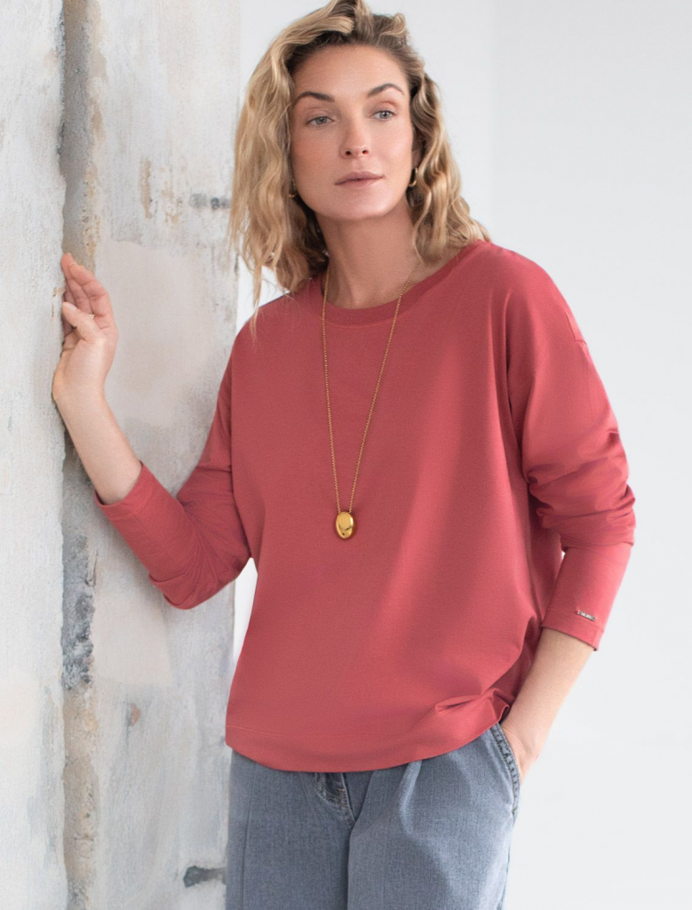 Свободный лонгслив темно-кораллового цвета с длинным рукавом выполнен из премиального хлопка с добавлением эластана, что обеспечивает комфорт и приятные тактильные ощущения. Однотонная расцветка и круглый ворот создают стильный и универсальный образ, который подойдет для повседневного использования. Спущенная линия плеча придает лонгу современный и расслабленный силуэт. Такой лонгслив идеально подходит для весеннего и летнего сезона благодаря легкой и дышащей ткани. Большие размеры позволяют выбрать оптимальный вариант на любую фигуру, обеспечивая свободу движений и удобство на каждый день. Этот комфортный лонгслив станет отличной базой в гардеробе, сочетаясь с различными стилями одежды и создавая простой, но эффектный образ.