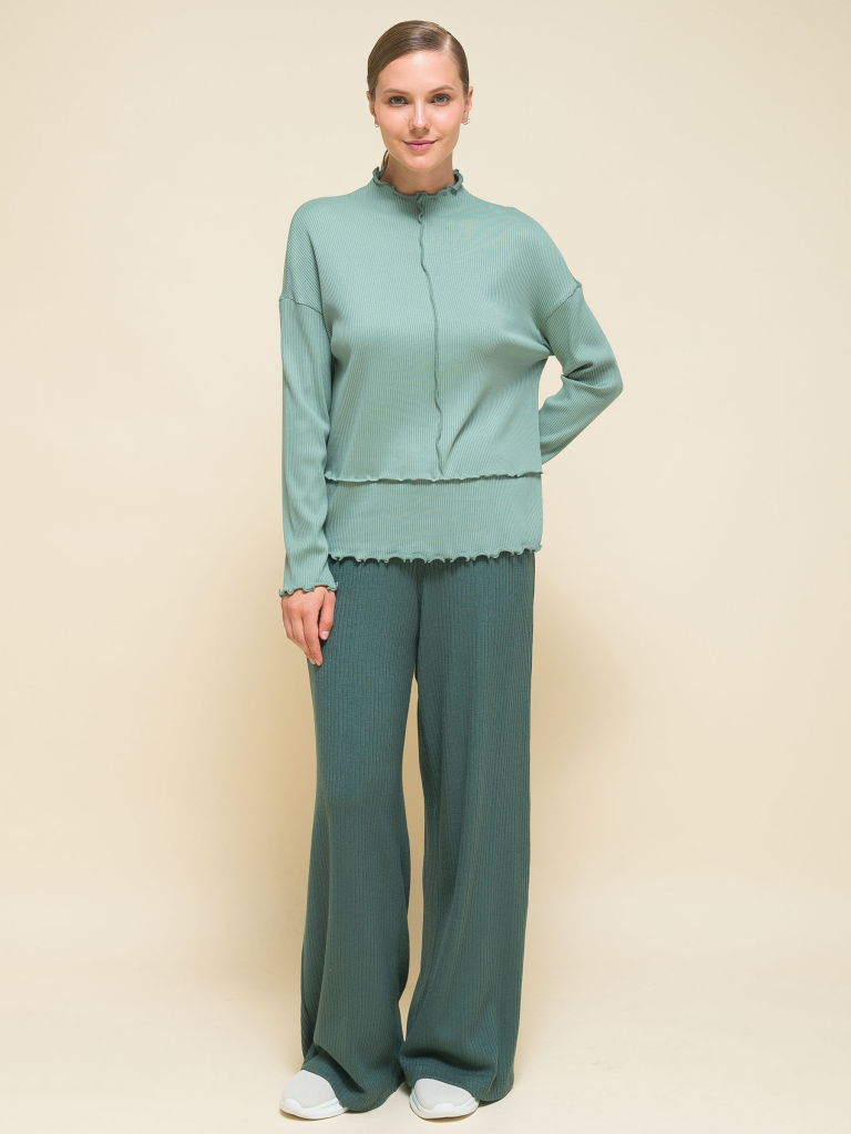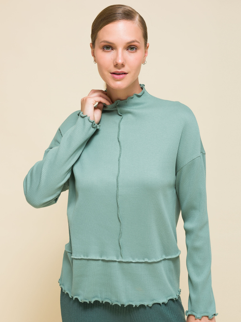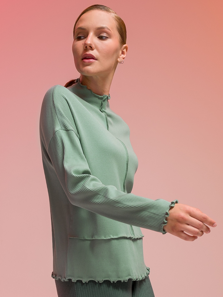 Женский джемпер из трендовой ткани в мелкий рубчик. Изделие свободного кроя со спущенным плечом подарит вам комфорт и свободу движения. Лонгслив из кашкорсе с высоким цельнокроеным воротником-стойкой обеспечивает дополнительную защиту шеи от холода и ветра в прохладную погоду. Декоративные швы и изящная обработка «салатный край» добавляют джемперу элегантности и женственности. Лонгслив однотонный, без принта. За ним легко ухаживать. В составе ткани преобладают качественный хлопок и мягкая вискоза — модель приятна на ощупь и отлично дышит. Эластан помогает сохранять прекрасную форму в течение длительного времени. Джемпер в рубчик представлен в двух трендовых цветах: зелёный и розовый. Размерный ряд: XS (42): S (44): M (46): L (48): XL (50). Джемперы такого фасона подходят как женщинам, так и девушкам, девочкам-подросткам. Такая кофта идеальна для работы, учёбы, отдыха, а также может выступить в роли домашней одежды. Женский джемпер с длинным рукавом можно носить осенью и весной (демисезон), зимой как средний слой одежды и в прохладную погоду летом. Он великолепно сочетается с различными брюками. Это замечательный подарок для мамы, сестры или подруги на Новый год или любой другой праздник.
