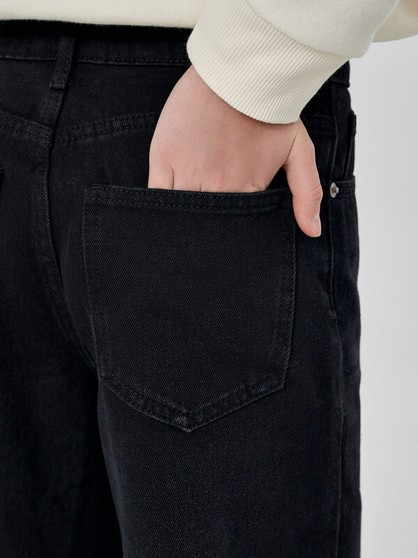 Черные джинсы прямого кроя — та самая надежная основа гардероба, которая выручает в любой ситуации. Универсальный силуэт и глубокий классический цвет позволяют легко комбинировать их с любыми футболками, свитшотами и блузками, создавая образы для любого случая. Умеренная эластичность и продуманный состав ткани —хлопок, полиэстер и вискоза — обеспечивают баланс между формой и свободой движения.