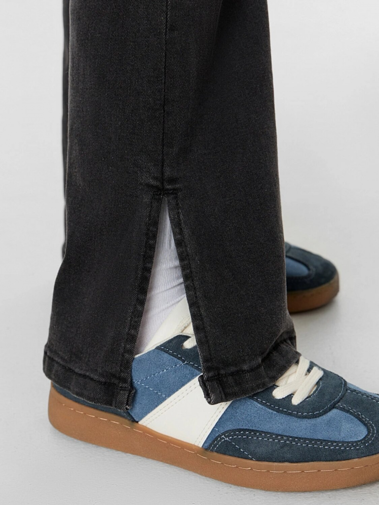 Универсальный дизайн и классический черный цвет с потертостями позволяют легко комбинировать джинсы с различными вещами из гардероба. Они будут отлично смотреться с футболками, лонгсливами, блузками или уютными толстовками, помогая создавать разнообразные образы для школы, прогулок и встреч с друзьями.