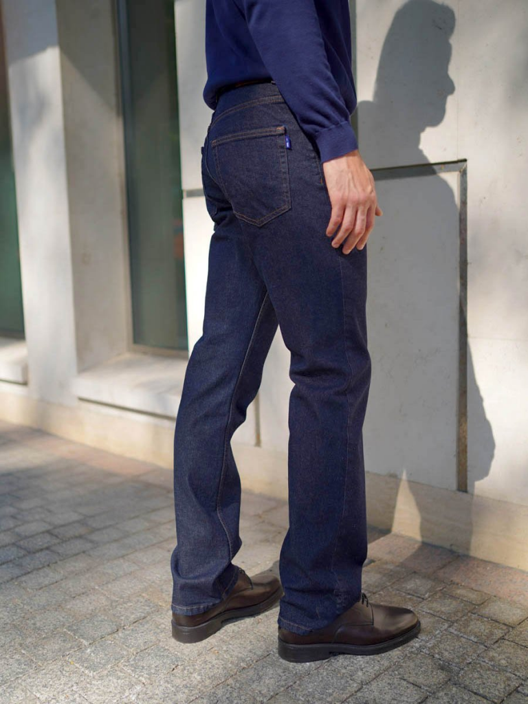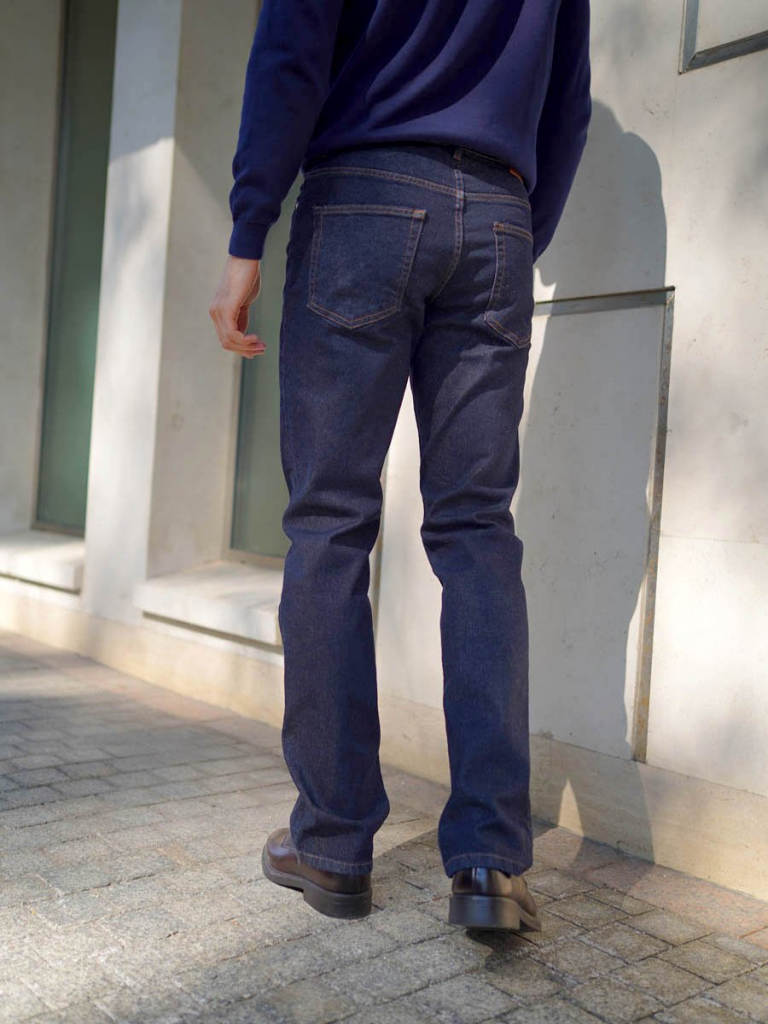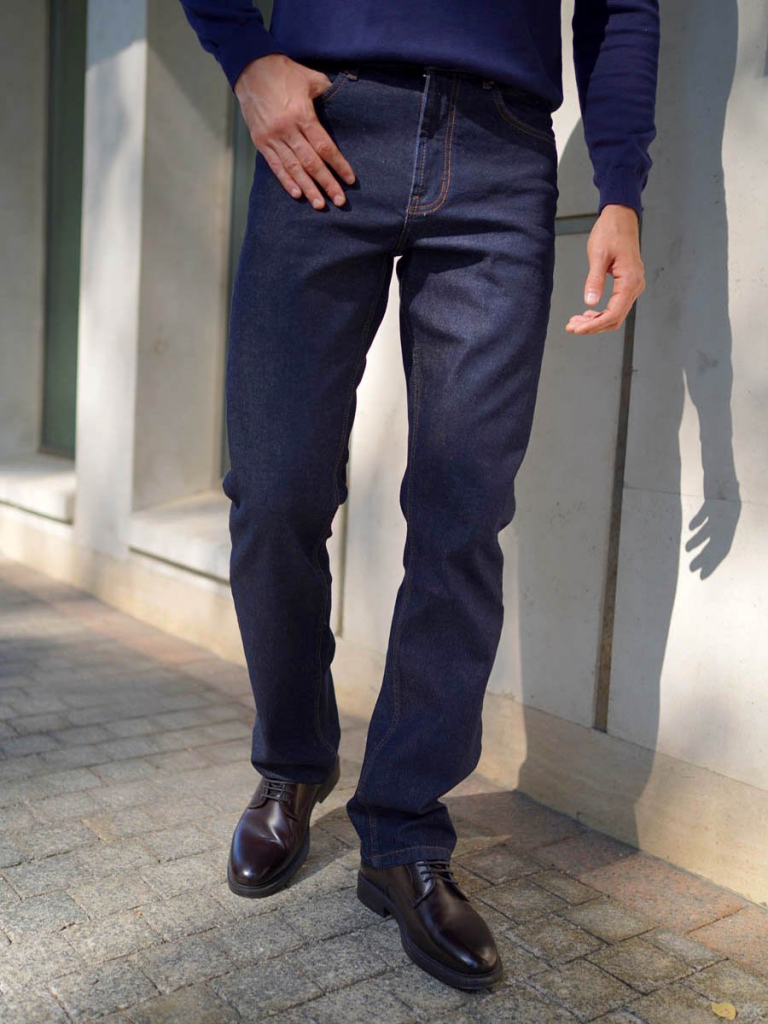 Мужские классические джинсы с пятью карманами. Посадка Regular fit (полуоблегающие по бедру), высокая талия, немного заужены к низу. Застежка на молнии. Выполнены из слабоэластичной ткани denim comfort stretch. Боковой шов сделан "в разутюжку", к нижней части шва пришита специальная декоративная тесьма "selvadge", имитирующая контрастную кромку джинсовой ткани. . Специальная стирка для сохранения цвета не стираной ткани.