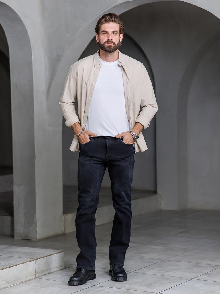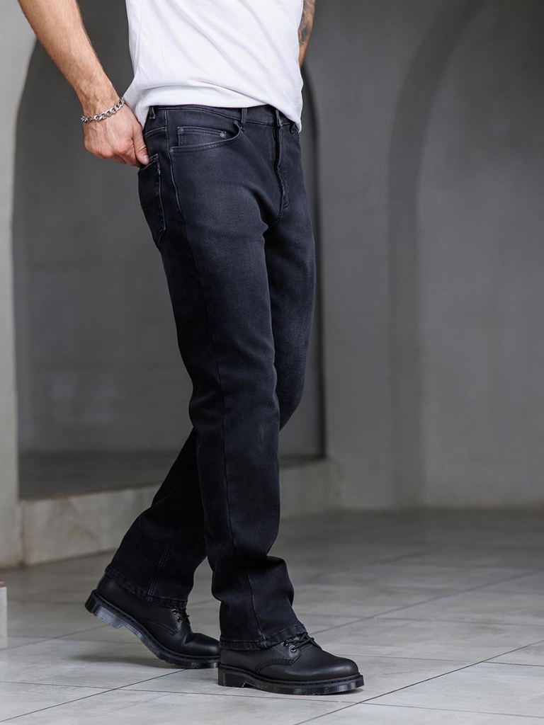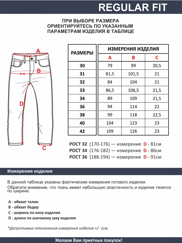 Мужские классические утепленные джинсы с пятью карманами. Посадка Regular fit (полуоблегающие по бедру), немного дополнительно заужены к низу по сравнению с моделью 0965, высокая талия. Застежка на молнии. Выполнены из слабоэластичной утепленной ткани denim comfort stretch, к изнаночной ткани прикреплена дополнительная трикотажная ткань (флис) с мягким, шелковистым и приятным на ощупь ворсом. Темная стирка с потёртостями и слабовыраженными "усами" спереди и потёртостями сзади. Параметры указаны для размера 32. Длина шагового шва для роста 32 - 81 см. , для роста 34 - 86 см, для роста 36 - 91 см.