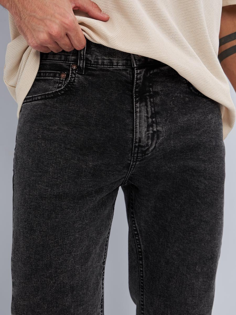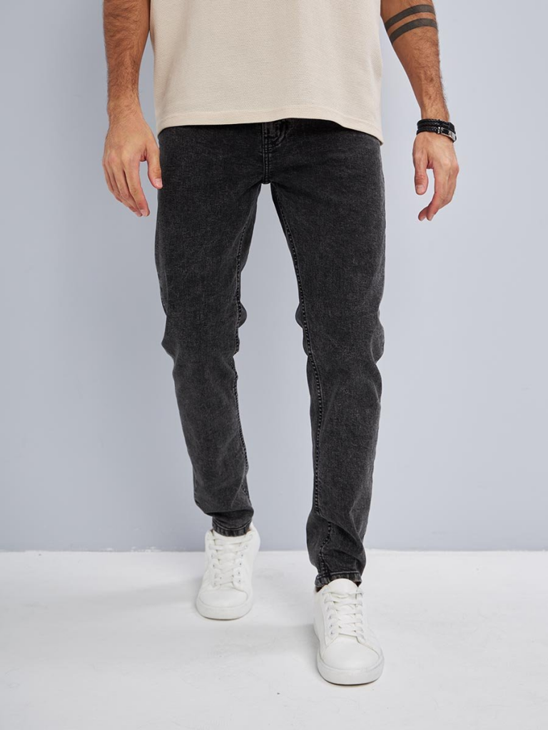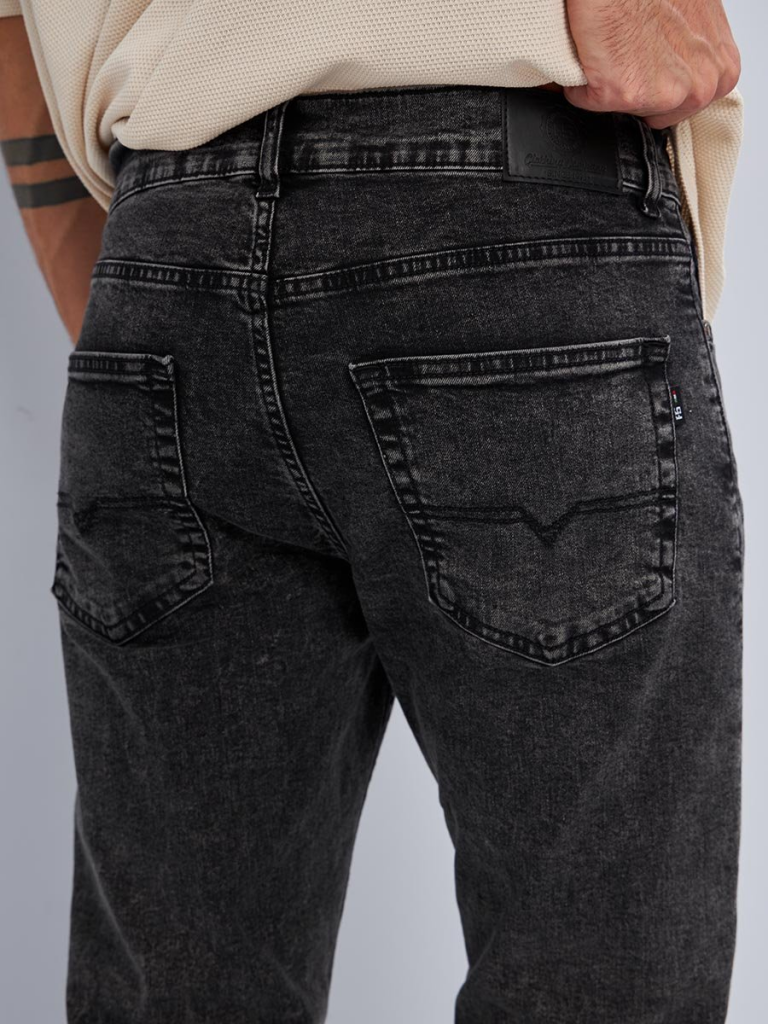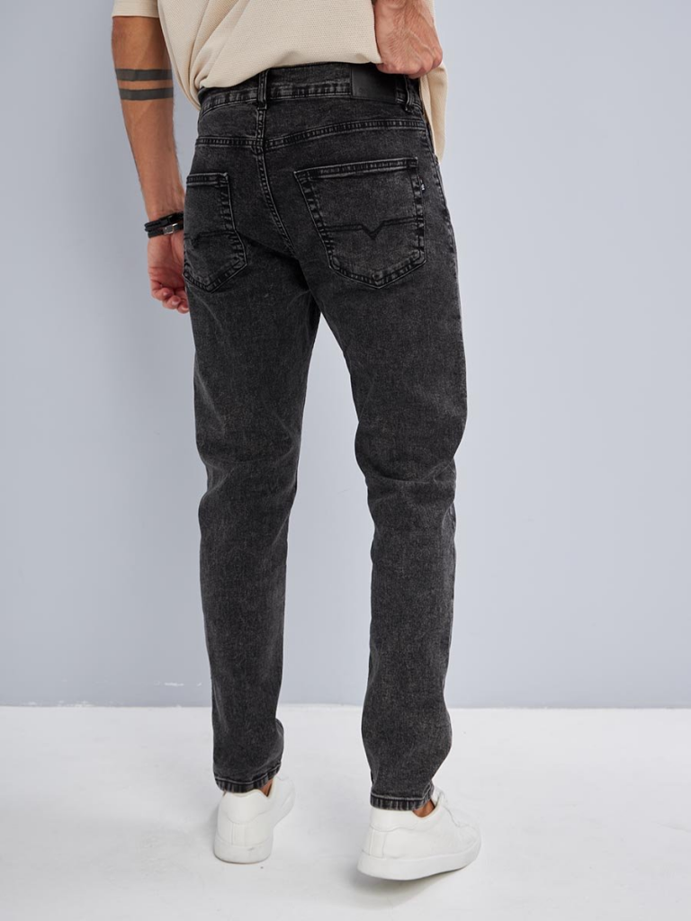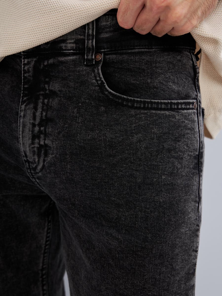 Мужские классические джинсы с пятью карманами. Посадка Slim Fit (облегающие по бедрам) предлагает зауженный крой, который подчеркивает силуэт и не стесняет движения. Средняя высота талии, застежка на молнии, зауженные к низу. Выполнены из слабоэластичной ткани denim comfort stretch, цвет ткани Black/Black (лицевая и изнаночная стороны ткани черные). Специальная темная стирка "towel wash", мраморный эффект. Выберите мужские классические джинсы Slim Fit и создайте стильный и уверенный образ, который подчеркнет вашу индивидуальность!