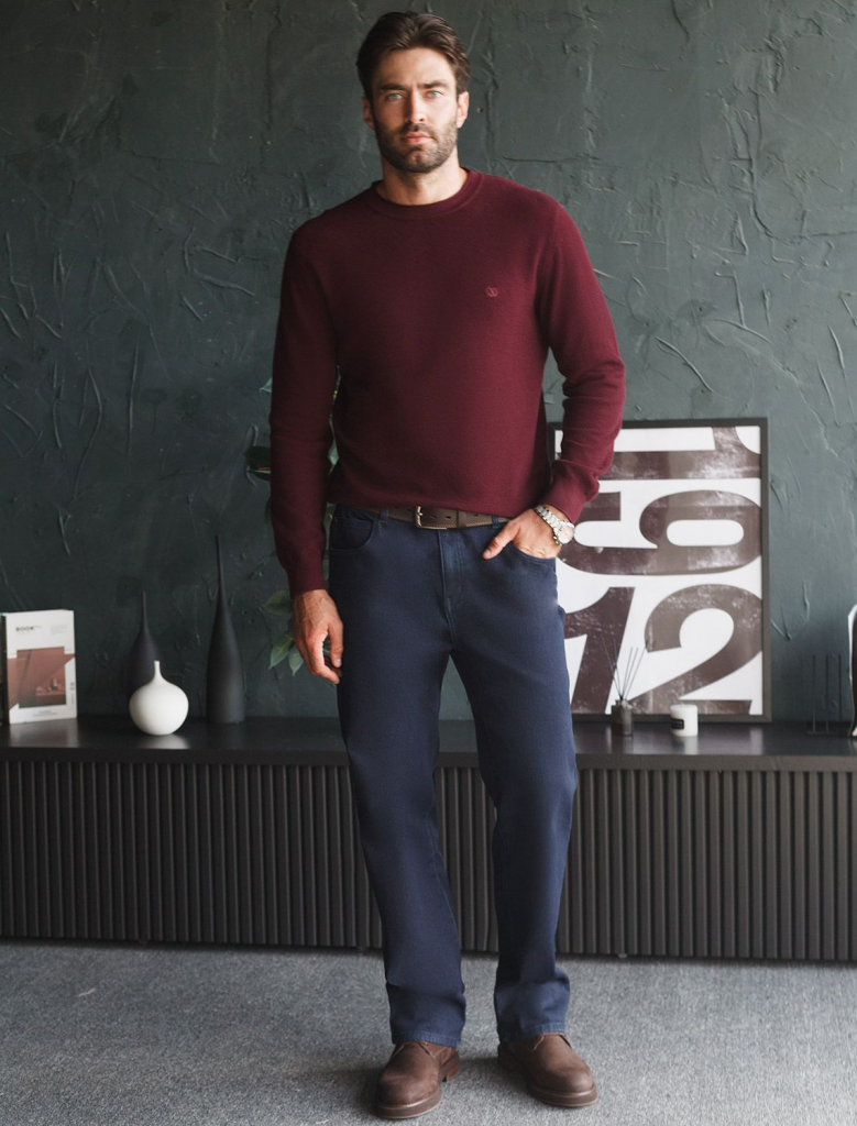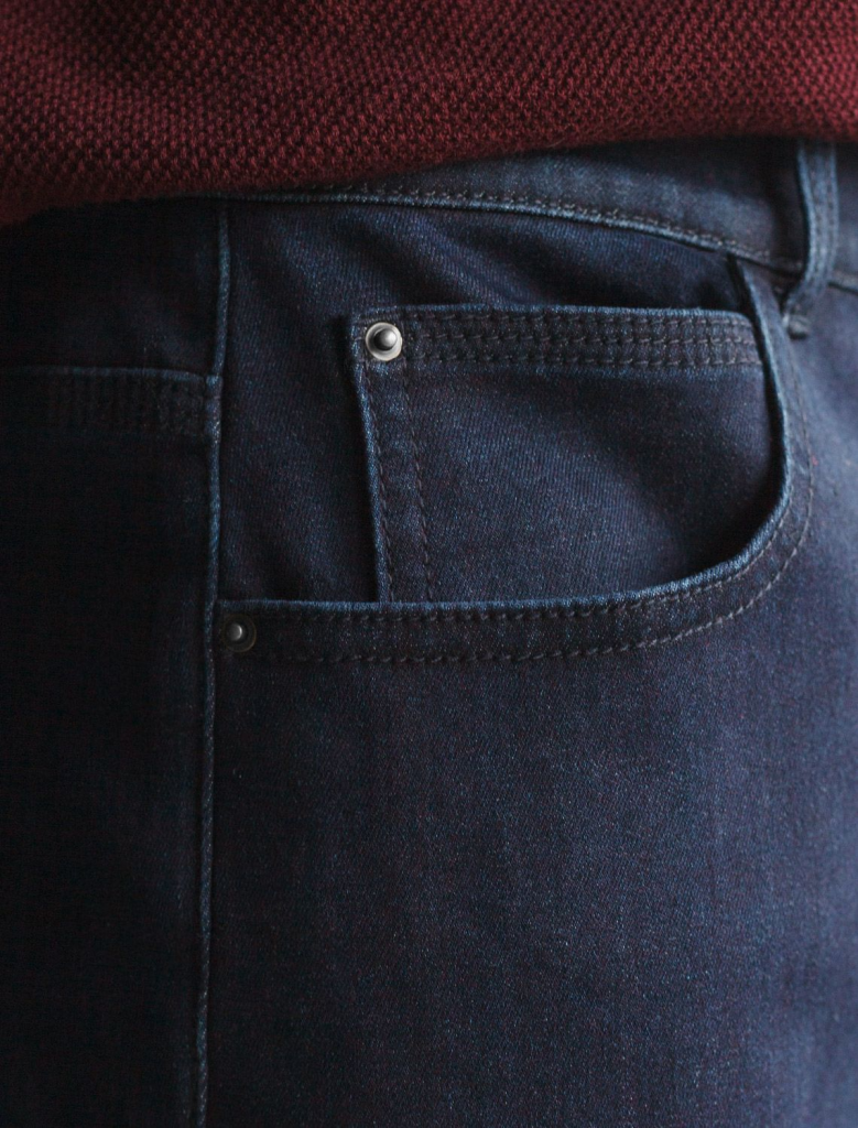 Теплые джинсы темно-синего цвета прямого кроя созданы для мужчин, ценящих комфорт и стиль даже в холодную осень или зиму. Повседневные джинсы выполнены из эластичного денима, легко тянутся и не сковывают движений, обеспечивая правильный баланс между свободой и удобной посадкой Regular Fit. Внутри мягкий флис дарит приятные ощущения, надежно согревают в холодную погоду и делают каждую прогулку максимально комфортной. Свободный классический крой подходит на разныетипы фигур, в том числе и большие размеры. Правильная посадка гарантирует удобство и комфортные ощущения при носке. Джинсы дополнены пятью карманами и брендированным патчем на поясе. Джинсы удобные на все случаи жизни: они сохраняют форму, не деформируются при носке и обеспечивают оптимальную теплоизоляцию. Утепленный материал создает дополнительный уровень защиты от холода, что делает изделие надежным выбором на зиму и осень. Комфортные брюки отлично сочетаются с разными образами благодаря универсальному дизайну. Они подходят тем, кто ценит практичнос