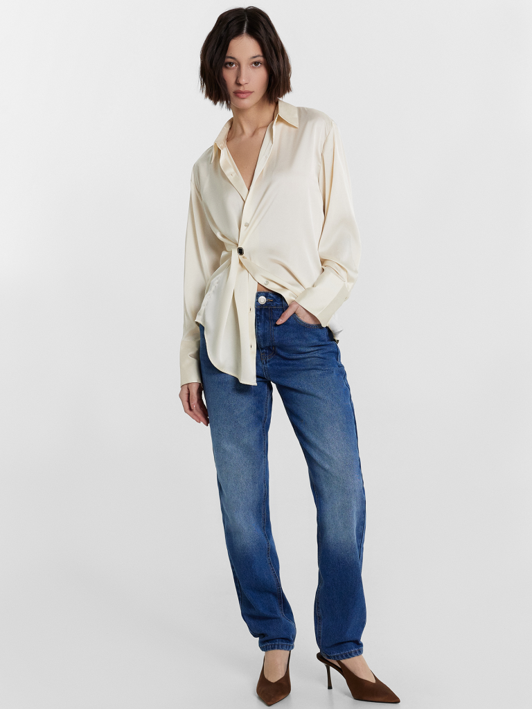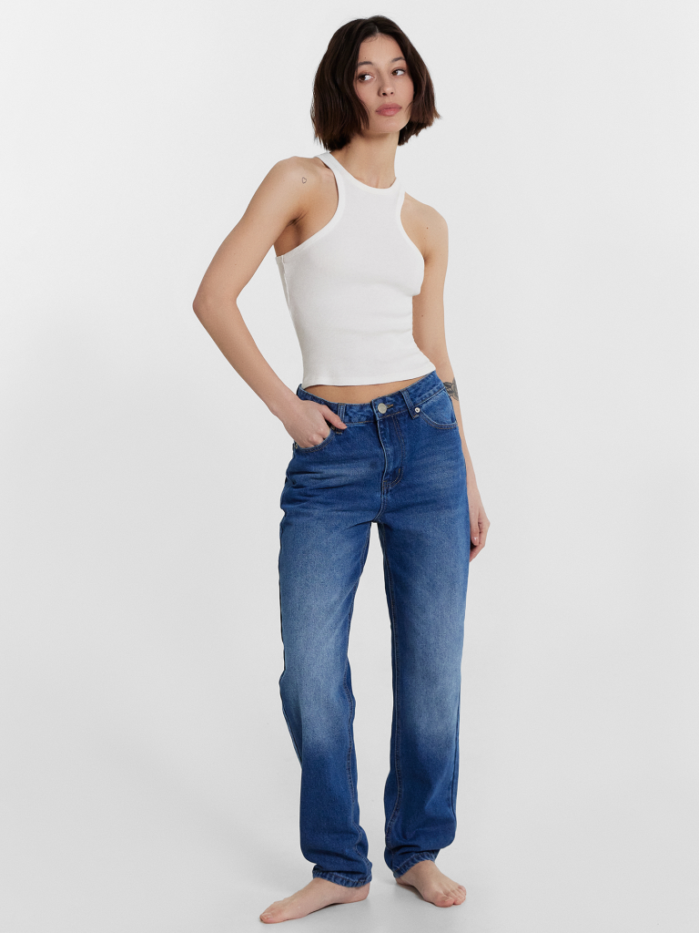Эти классические женские джинсы прямого кроя — универсальная и стильная модель, которая легко впишется в любой гардероб. Застежка-молния и пуговица обеспечивают удобную фиксацию, а пять карманов добавляют практичности. Петли для ремня позволяют дополнить образ аксессуарами, создавая индивидуальный стиль. Материал джинсов — сочетание хлопка и вискозы, что делает изделие особенно комфортным и приятным в носке. Хлопок славится своей прочностью, воздухопроницаемостью и гипоаллергенными свойствами, обеспечивая естественную терморегуляцию и комфорт для кожи. Вискоза, в свою очередь, придает ткани мягкость, легкость и красивую драпировку, а также делает изделие более устойчивым к сминанию. Такое сочетание материалов позволяет джинсам сохранять форму, оставаясь удобными и стильными. Эта модель идеально подходит для создания повседневных и элегантных образов, легко комбинируясь с различными топами, блузками и жакетами. Рекомендуем для стильного и комфортного гардероба!