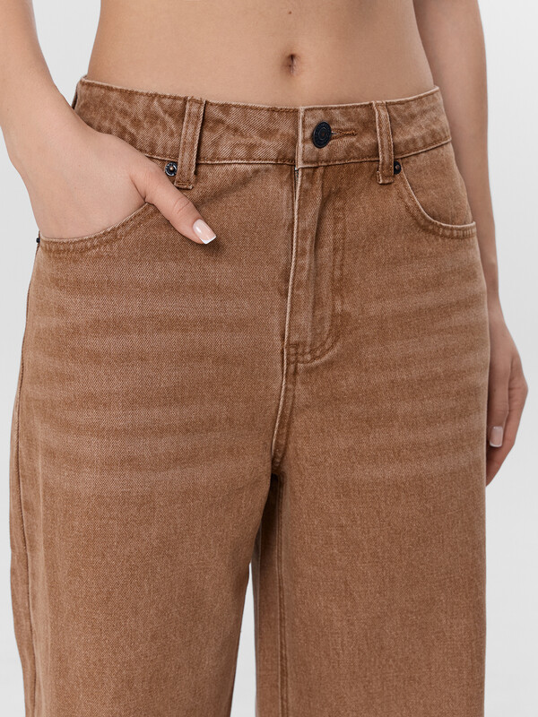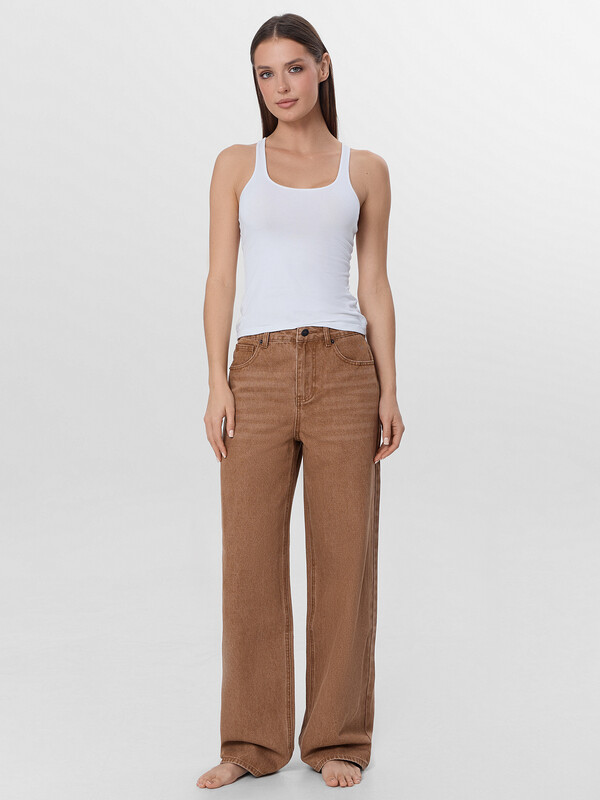 Женские коричневые прямые джинсы — ваш надежный союзник для создания стильных повседневных образов. Универсальная средняя посадка и прямой крой, идущий от бедра, обеспечивают идеальную свободу движений и создают собранный силуэт, который визуально удлиняет ноги.