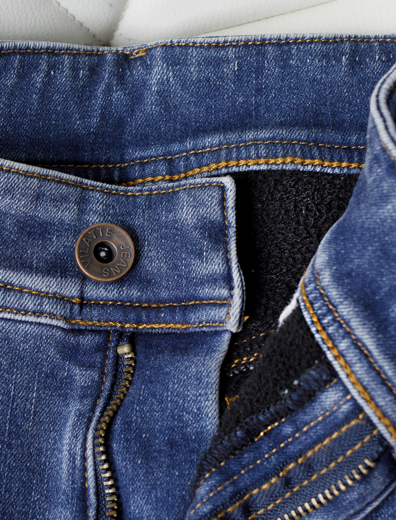 Джинсы силуэта mom-fit выполнены из эластичного денима. Внутренняя сторона изделия утепленная мягким флисом надежно защищает от холода и ветра. Любимая во всем мире модель с посадкой на талии подчеркивает фигуру и скрывает недостатки. Мастхэв на холодную осень и зиму и самый удобный элемент повседневного гардероба.