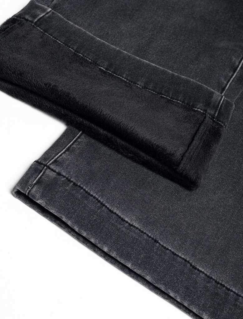 Джинсы-трубы выполнены из эластичного денима плотностью 6.6 oz. Внутренняя сторона изделия утепленная мягким длинноворсовым флисом обеспечит тепло, комфорт и защиту от холода. Свободный силуэт не сковывает движений и подходит для любой фигуры. Лучший вариант для зимнего периода, когда хочется выдержать стиль и практичность.