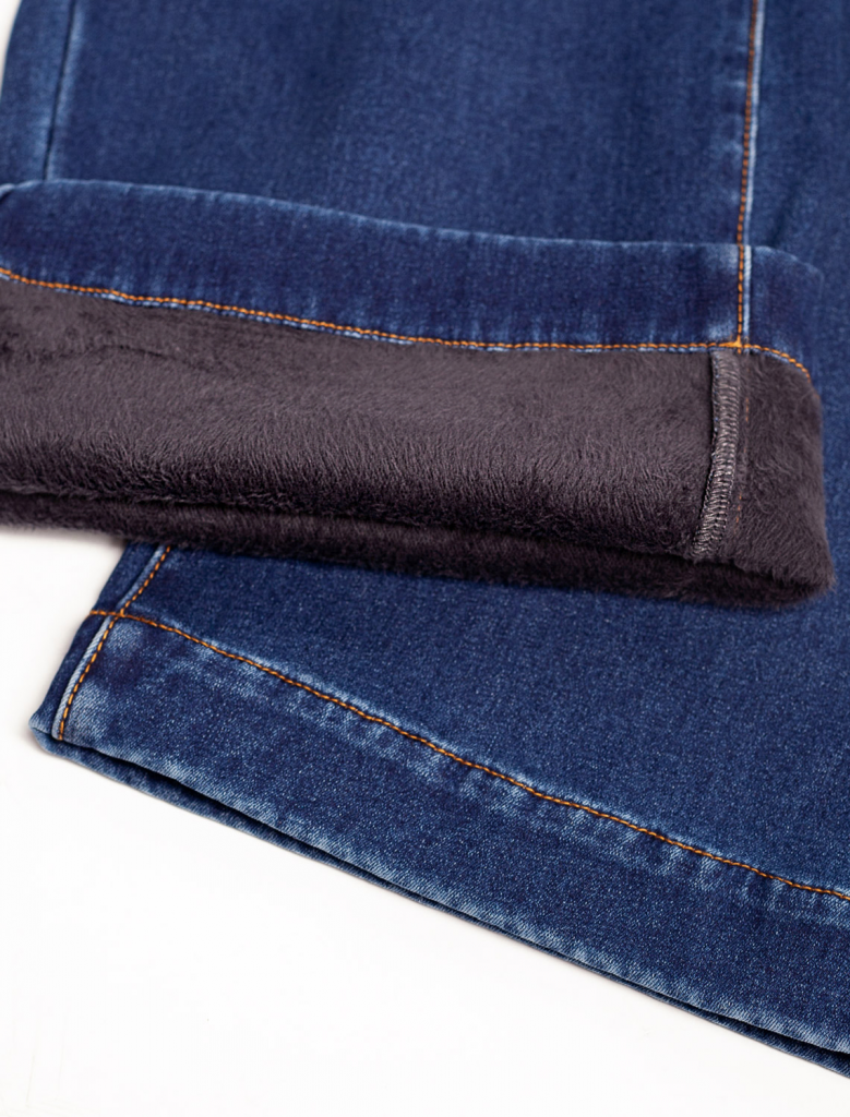 Джинсы-трубы выполнены из эластичного денима плотностью 16.6 oz. Внутренняя сторона изделия утепленная мягким длинноворсовым флисом обеспечит тепло, комфорт и защиту от холода. Свободный силуэт не сковывает движений и подходит для любой фигуры. Лучший вариант для зимнего периода, когда хочется выдержать стиль и практичность.
