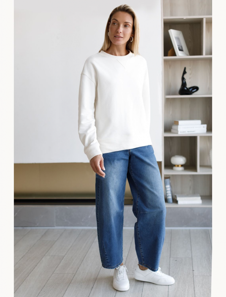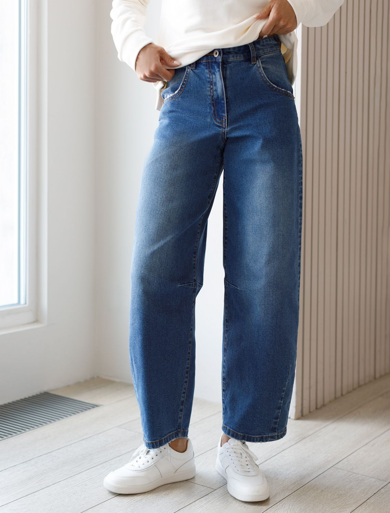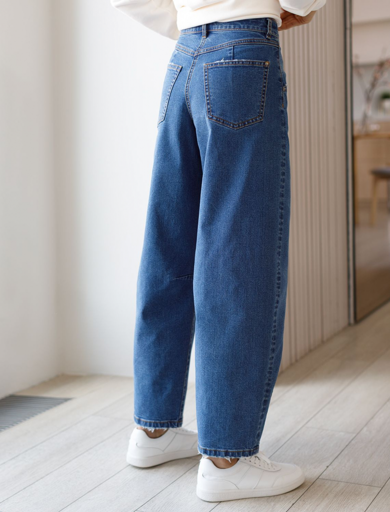 Стильные джинсы Baggy выполнены из эластичного денима, который отлично держит форму и не вытягивается даже при активной носке. Широкие джинсы отличаются современным дизайном с декоративной стиркой и подходят для создания эффектных образов. Благодаря свободному крою, джинсы обеспечивают комфортные ощущения на протяжении всего дня и не сковывают движения. Это отличный выбор для прохладной погоды осенью: материал приятен к телу и подходит как для худеньких, так и для обладательниц женственных фигур, правильный крой джинс отлично сядет на большие размеры.Широкие джинсы сочетаются с узкими ботильонами для трендового создания контраста объемов, а так же с обувью на плоском ходу. Эластичные свойства ткани обеспечивают удобные посадку и свободу движений — стрейч-материал делает повседневные джинсы особенно практичными для ежедневного гардероба. Прекрасно подойдет тем, кто ценит комфортные вещи без ущерба стилю. Эти багги легко комбинируются с укороченным верхом, облегающими водолазками или свободными рубашками в